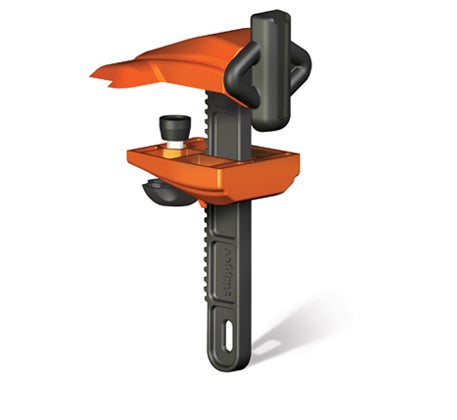 Este soporte/receptor de abrazadera se utiliza para conectar la unidad XS y/o el final de la cinta a superficies angulares, como marcos de puertas, superficies de trabajo y estantes. Basta con colocar la abrazadera en su lugar y apretar el tornillo. El soporte/receptor de abrazadera se puede colocar horizontal o verticalmente dependiendo de la aplicación deseada.