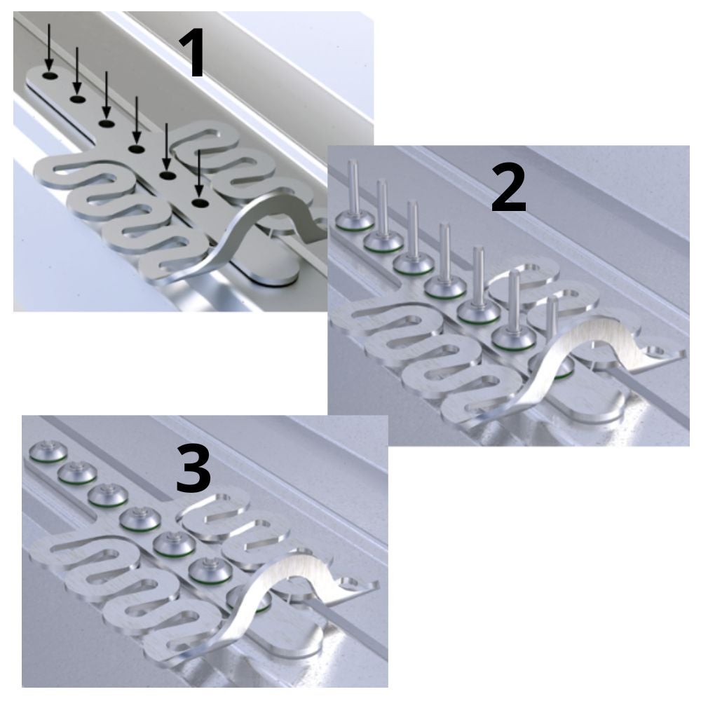 El punto está diseñada para fijarse directamente a chapas trapezoidales.