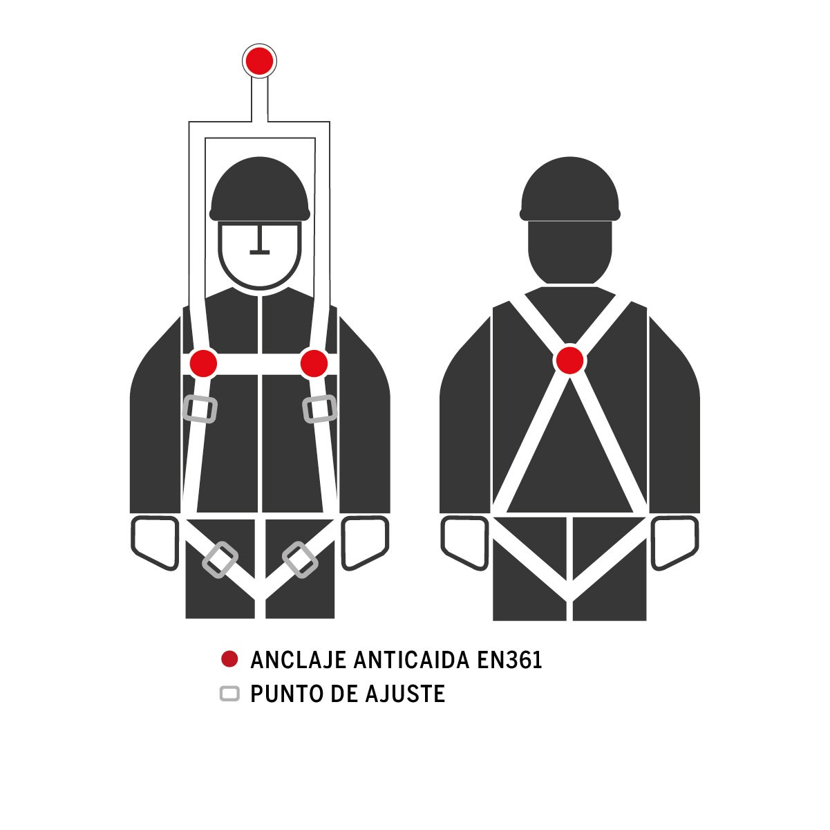 - Con enganche dorsal. Regulable en hombros y muslos.