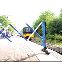 Barrera extensible desde 550 mm hasta 3100 mm. Tiene un sistema de clip que la mantiene estable cerrada y que permite su conexión con otras barreras cuando está extendida