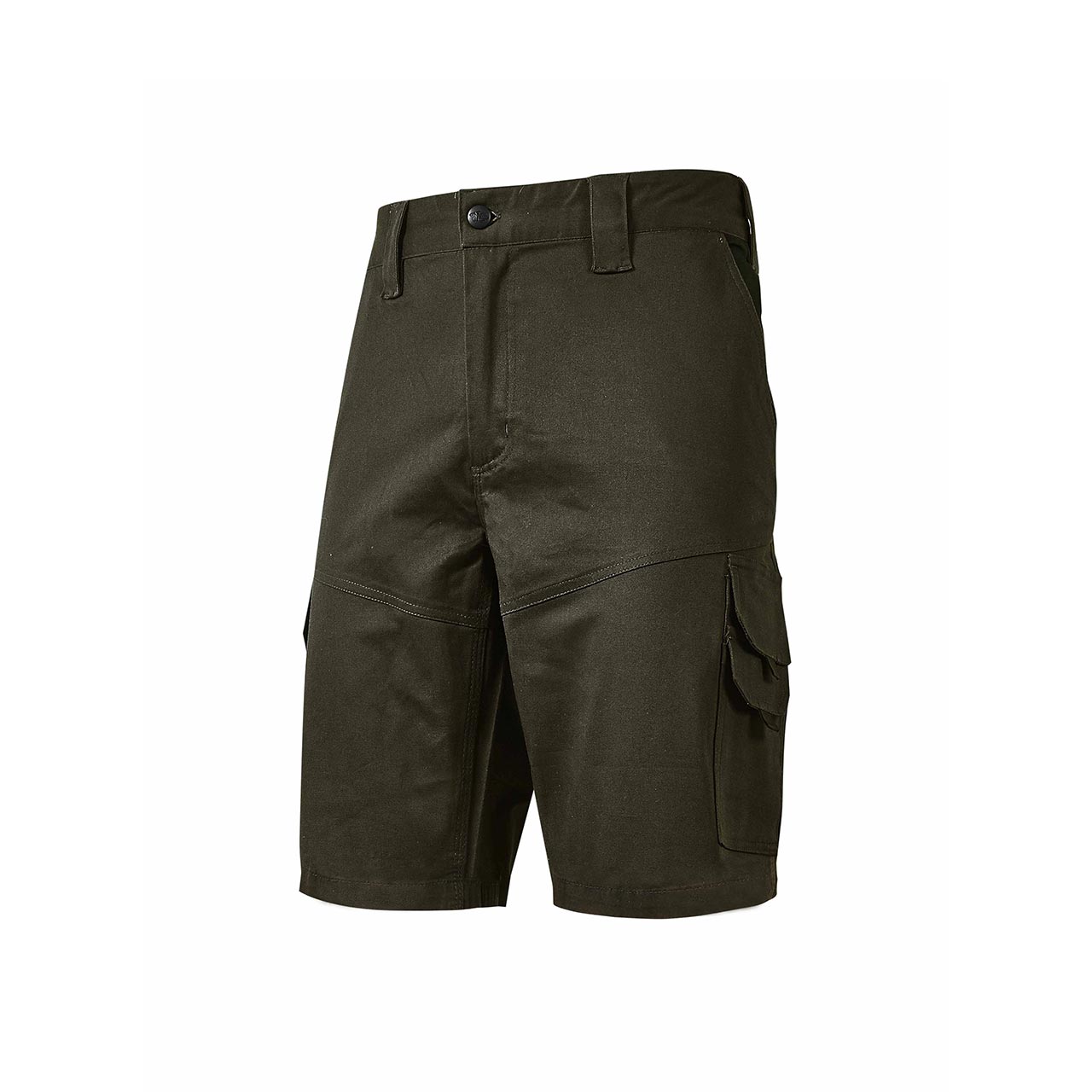 Bermuda de hombre U-Power con bolsillos laterales y elástica en la cadera para una vestibilidad ideal. Cierre central con cremallera y botón de goma resistente a los arañazos.