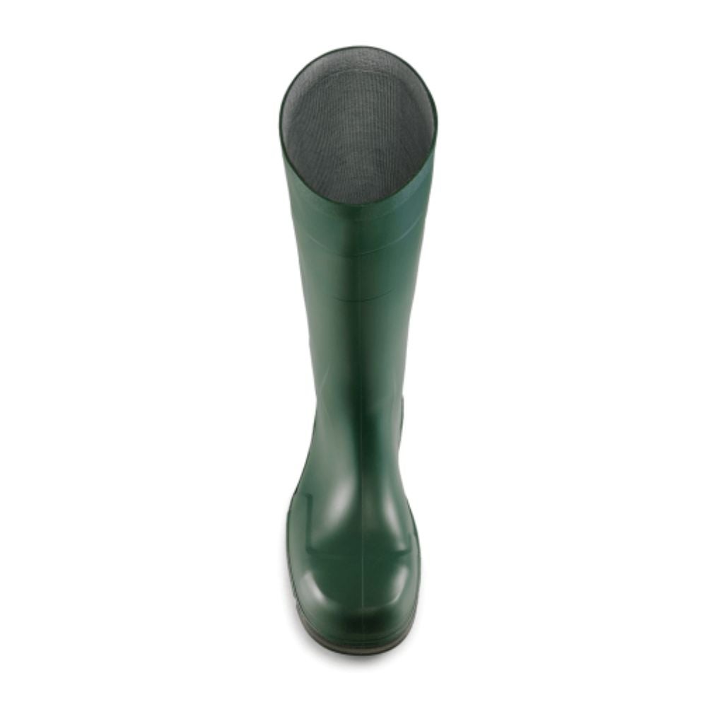 Bota de agua con puntera y plantilla de acero. Resistentes a la cal, el cemento, aceites y grasas industriales, ácidos y sosa caústica. Resistente y flexible. Antiestática. Caña recortable según las exigencias individuales.