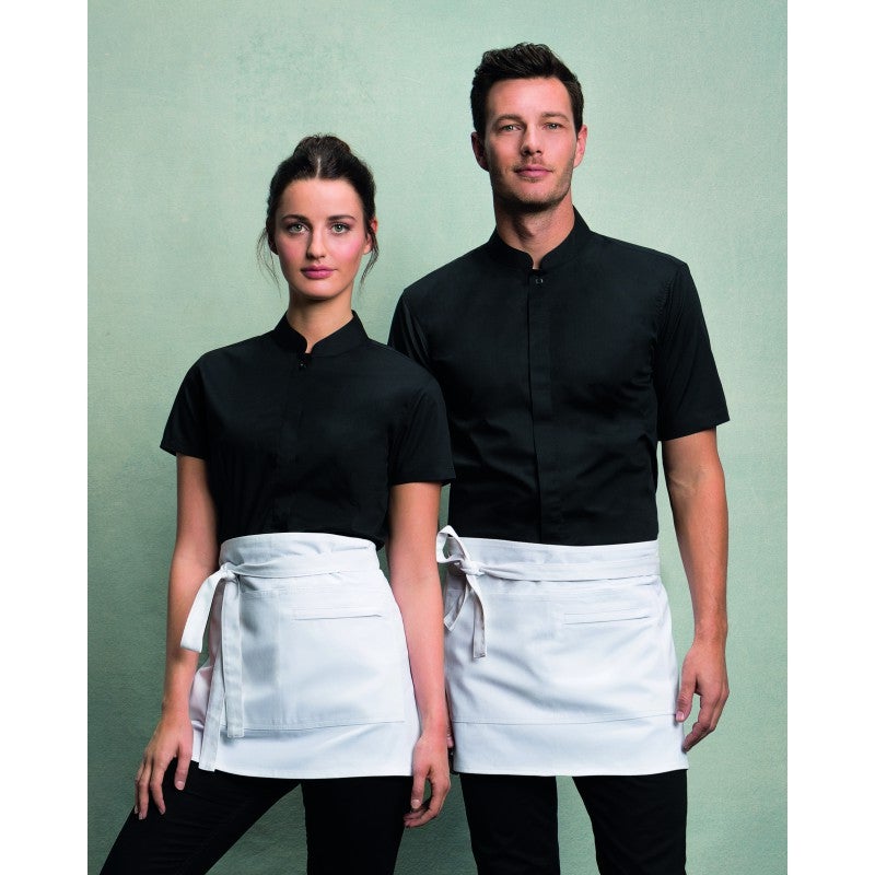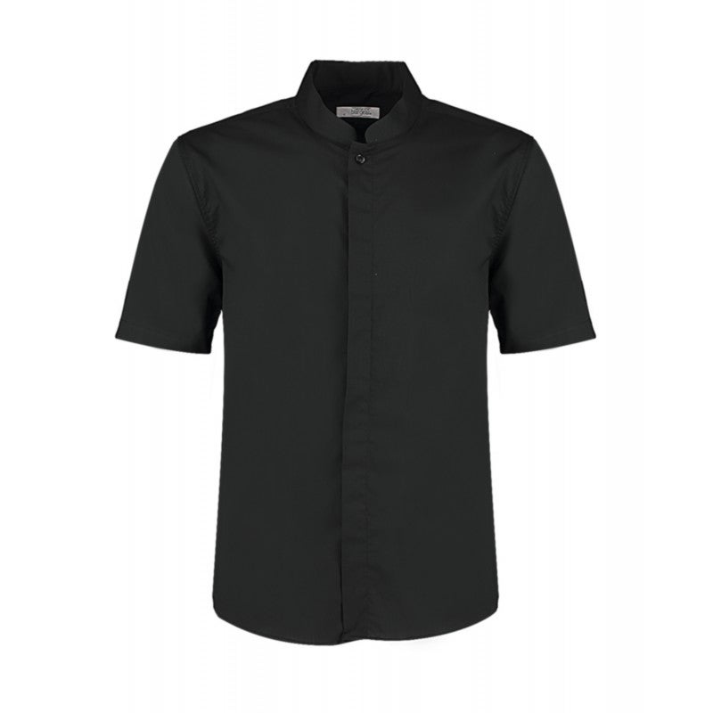 Camisa cuello mandarín entallada negro hombre