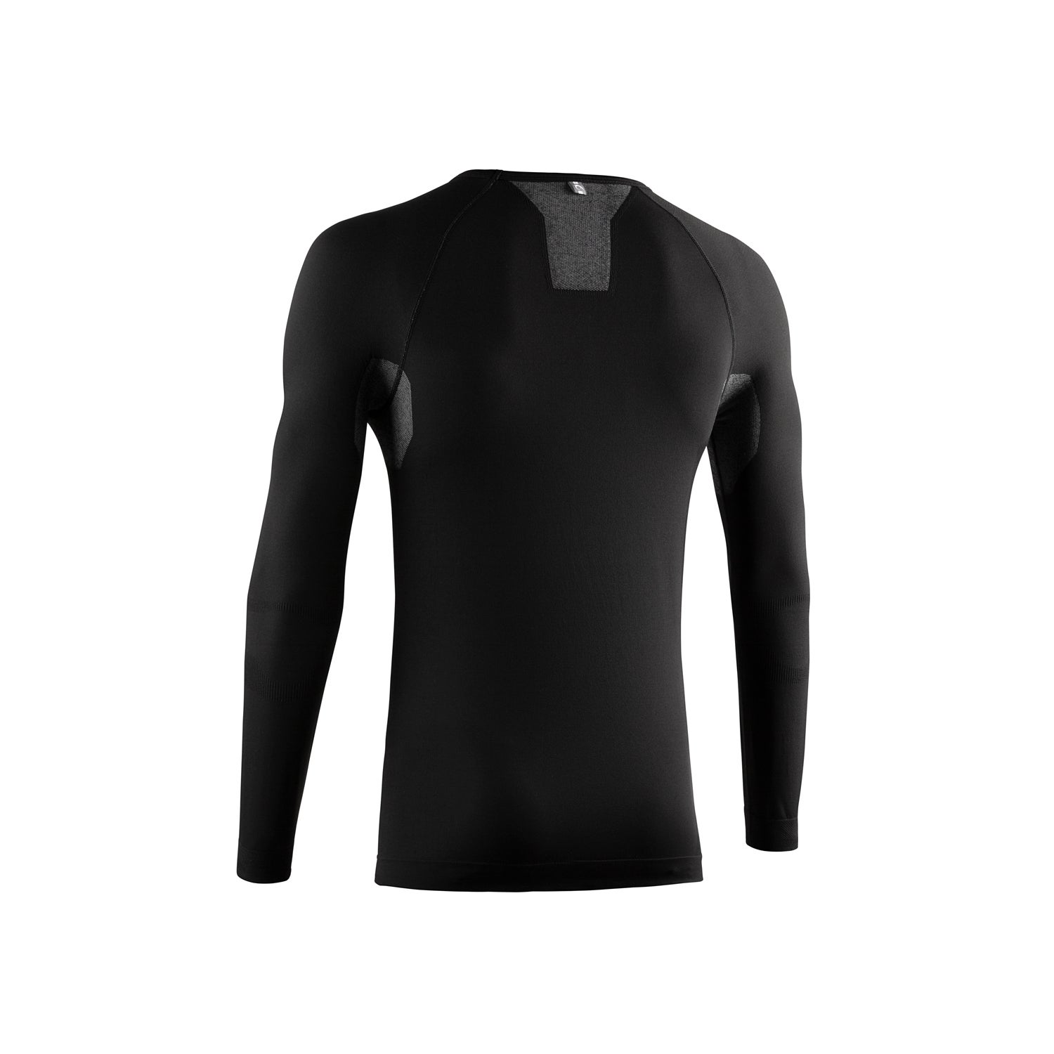 Camiseta térmica fabricada con tecnología seamless (perímetro sin costuras), costuras planas, tejido de punto elástico bidireccional, máxima libertad de movimiento, adaptabilidad y confort.