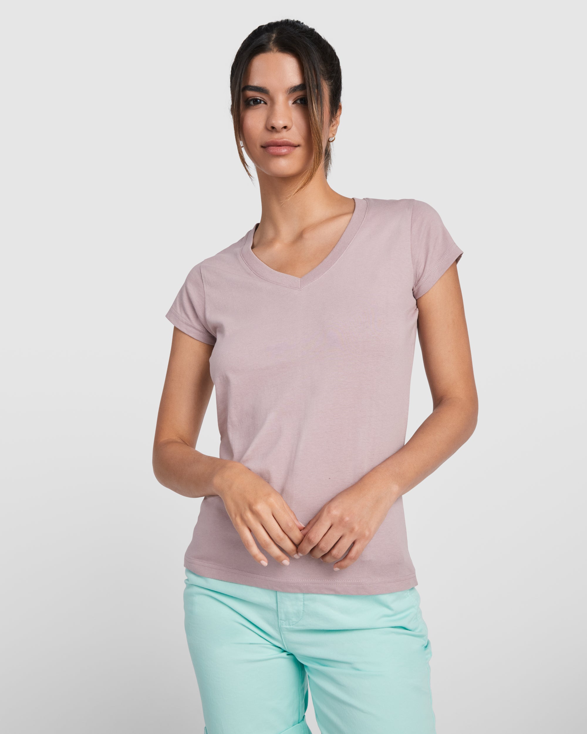 Camiseta de manga corta para mujer con escote en pico. Tallaje ajustado.