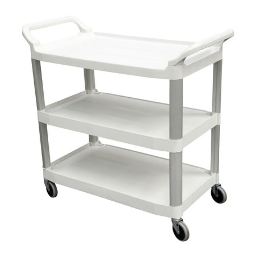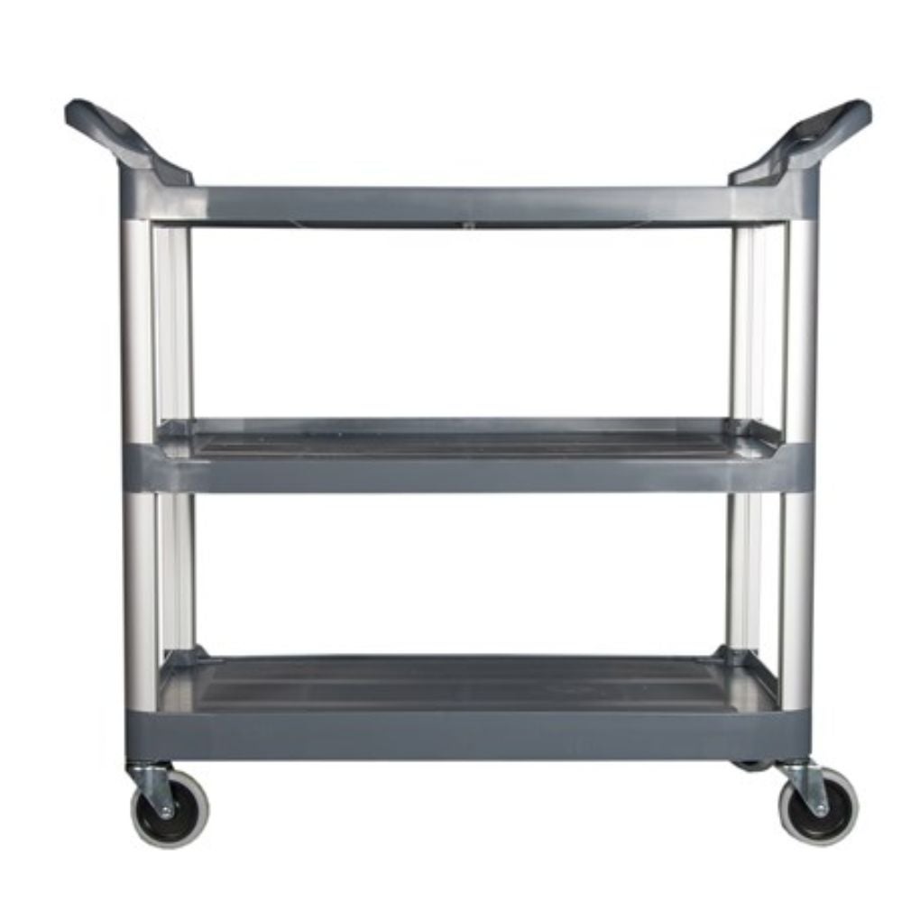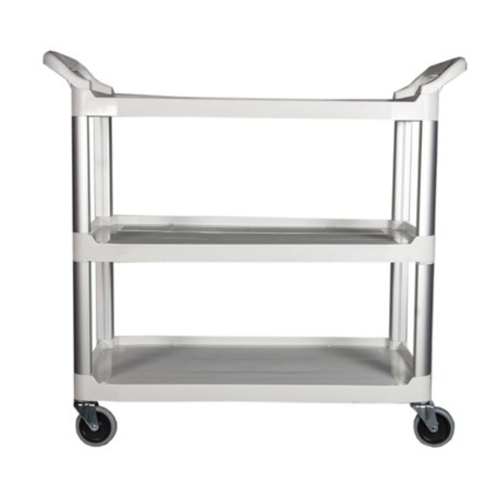 Carro abierto con barras metálicas y estantes moldeados de polipropileno.