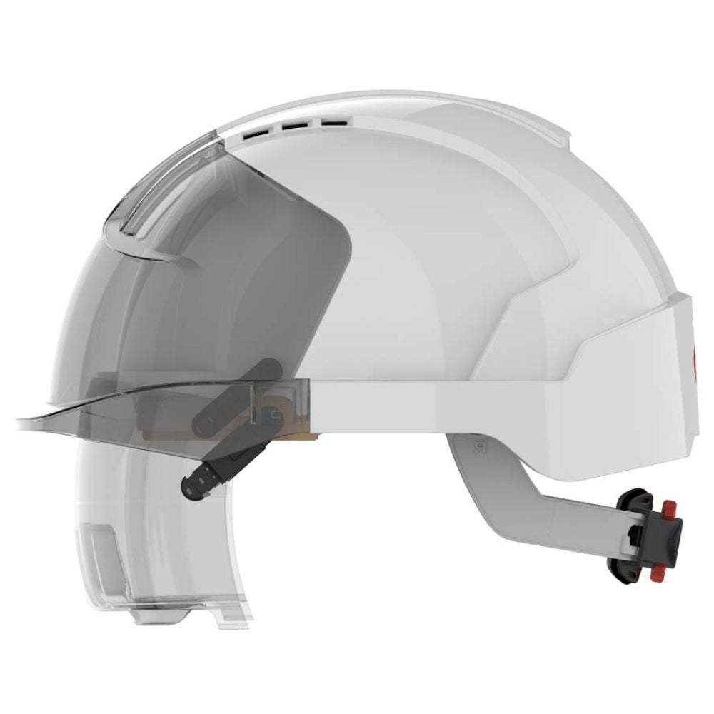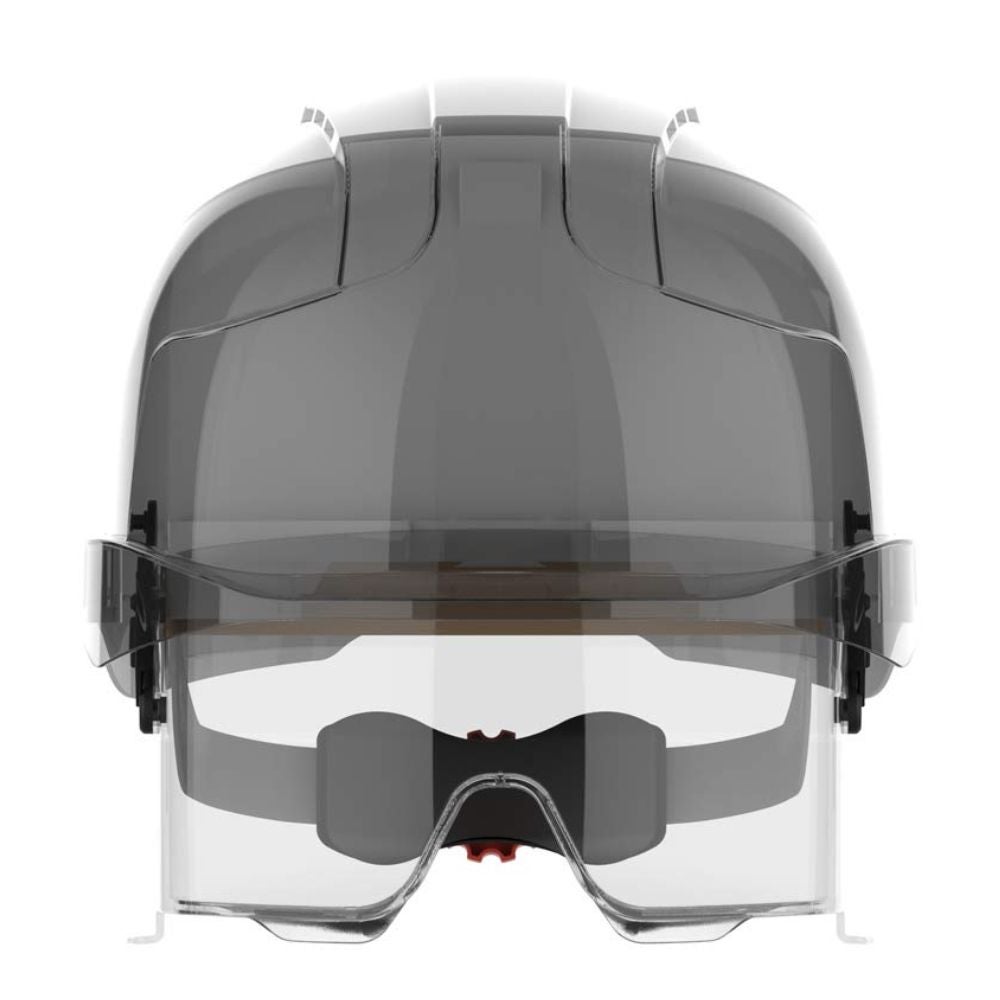 Casco de seguridad de nueva generación. Está basado en la tecnología de protección craneal Evolution e incluye una multitud de características punteras. Su gafa integrada de clase óptica 1- fácil de colocar, ajustar y mantener, asegura protección al alcanzar la mano en cualquier momento.
