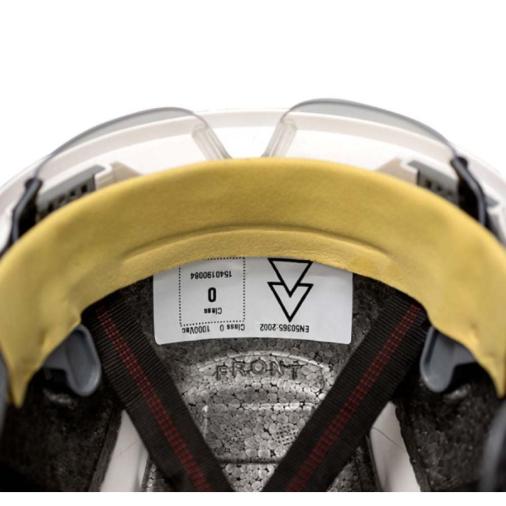 Cumple con EN397 para cascos de seguridad industrial y EN12492 para cascos de montañismo Cumple con EN50365 para cascos para uso en instalaciones de baja tensión cuando está en configuración EN397 Certificado CE Número 682756, emitido por BSi Product Certification Cumple con el rendimiento opcional de Deformación Lateral Amplio rango de tamaño adecuado para todas las formas de cabeza