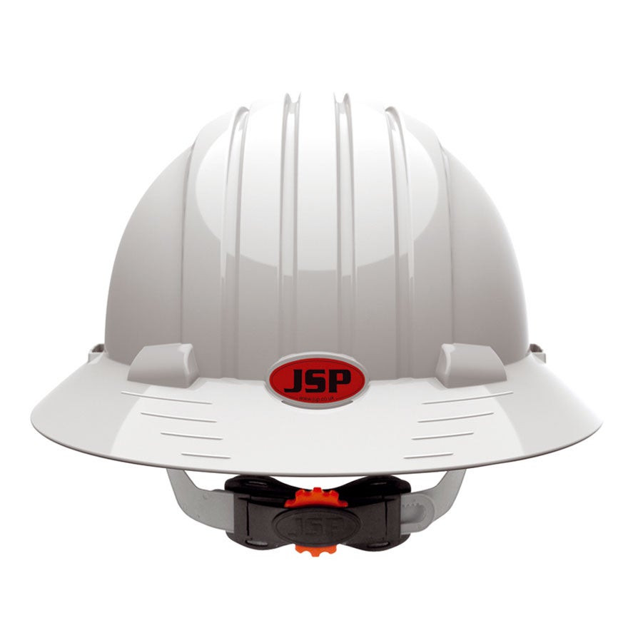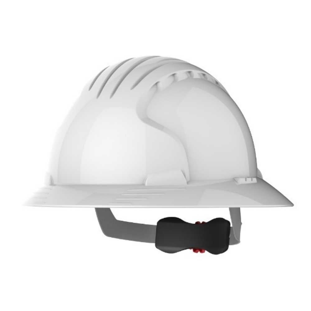 Cumple con los requisitos opcionales de aislamiento eléctrico 440V. Casquete es de bajo perfil. Compatible con otros productos de JSP. La ala completa proporciona protección a la nuca y las orejas contra el sol, reflejos, lluvia, nieve y caidas de escombros.