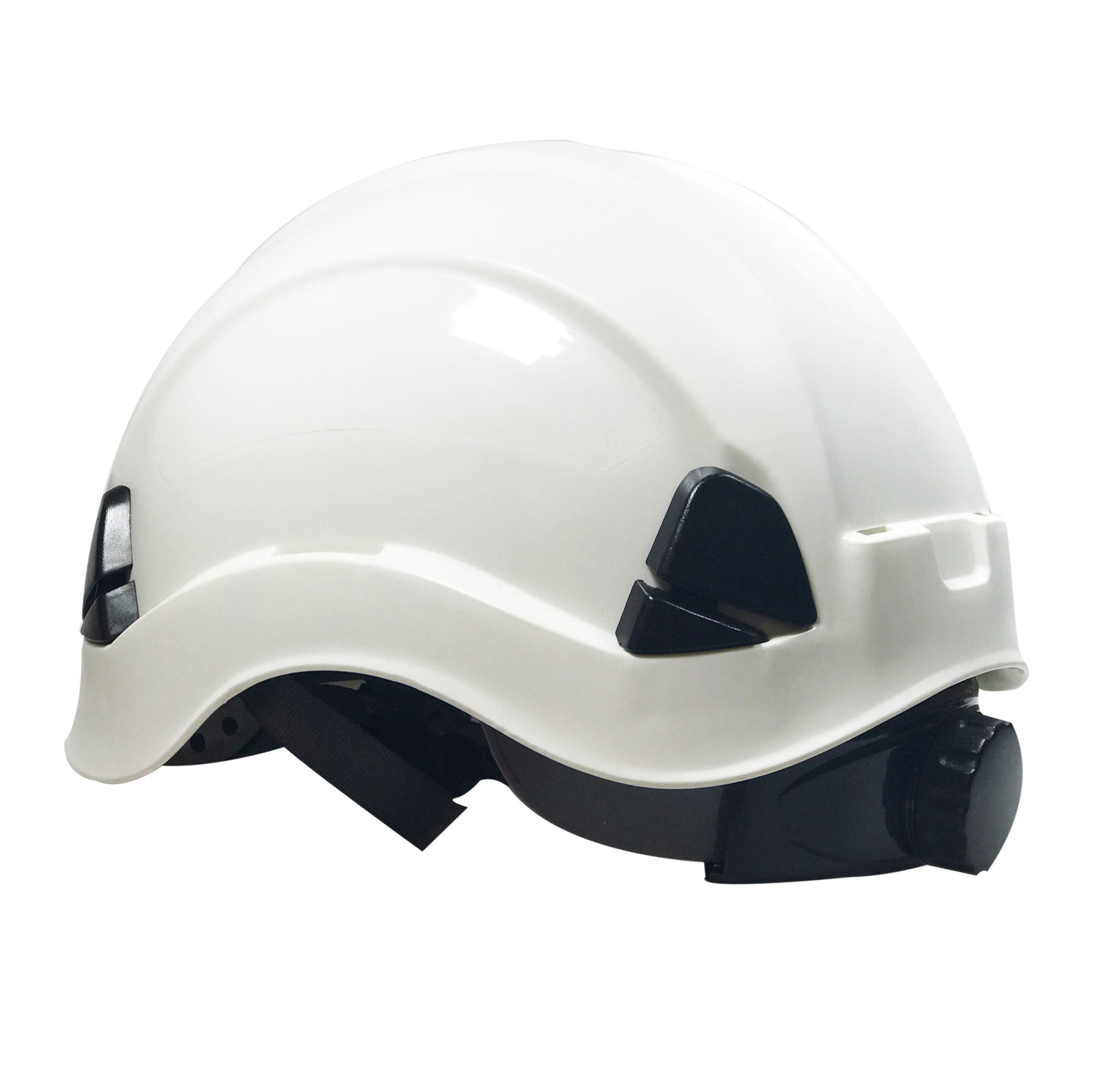 Casco diseñado para trabajos en alturas. Casco de ABS con suspensión textil de nylon de 6 puntos de anclaje. Rosca de ajuste dorsal para sujetarlo con estabilidad. Incluye ranuras de 30 mm para acoplar otros accesorios de protección y banda de sudoración extra ancha reemplazable. Incluye barboquejo de 3 puntos con cierre rápido.