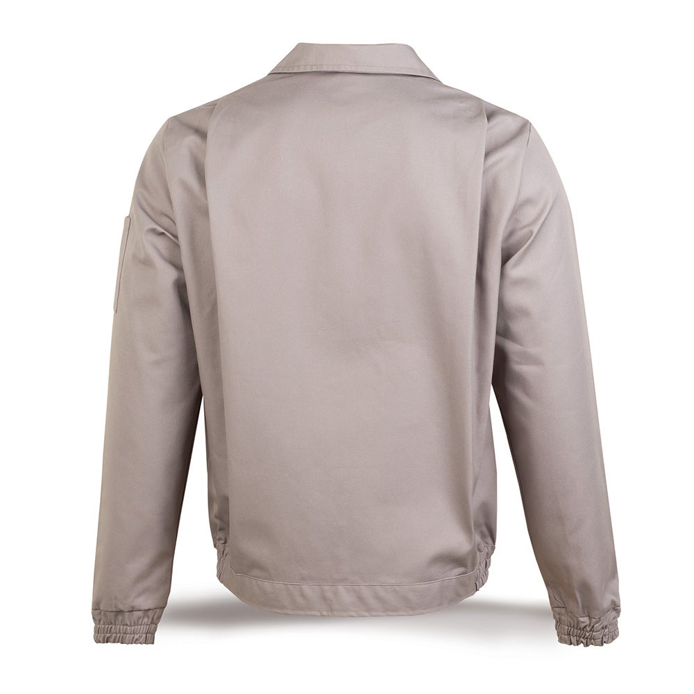Cazadora de trabajo gris de tergal de 245 g. con cremallera de diente ancho. Puños elásticos de mejor calidad en los modelos de algodón. Cremallera diente ancho. Bolsillo extra para bolígrafos y otros utensilios en manga de la cazadora.