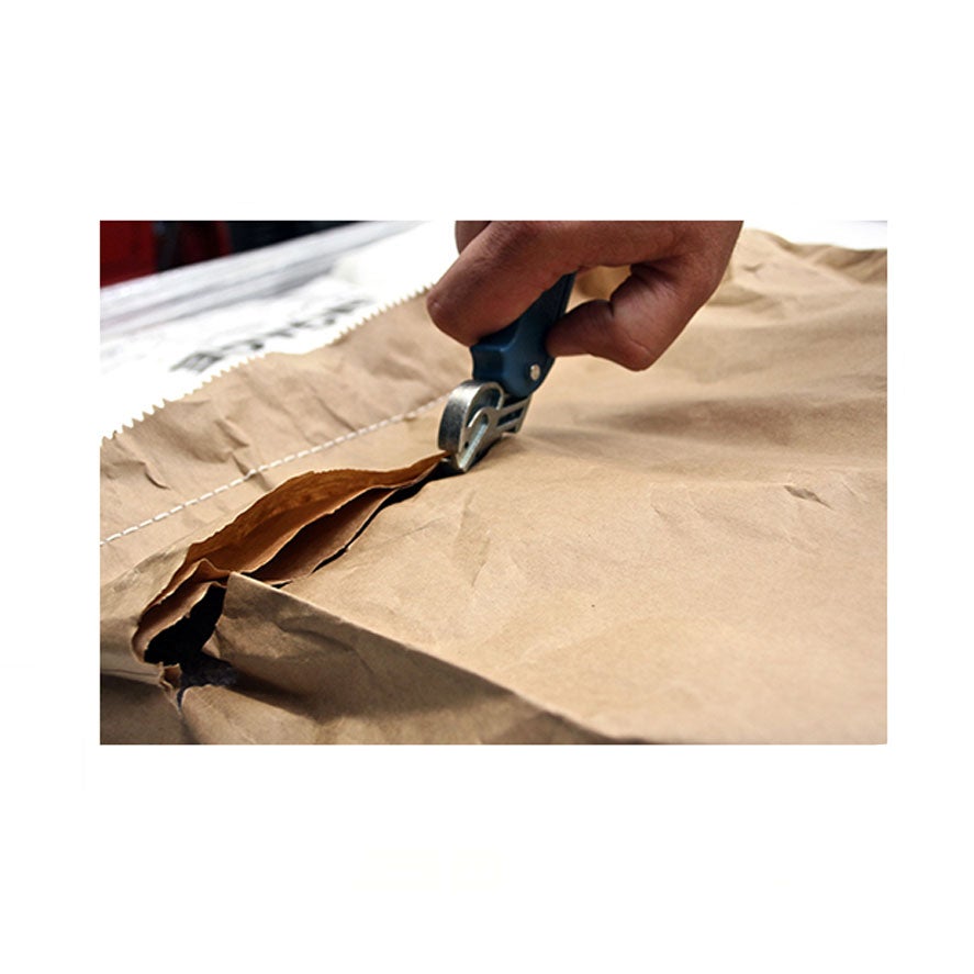Cutter detectable pensado para la industria agroalimentaria y farmacéutica. El cabezal universal es ideal para cortar cartón y abrir bolsas de ingrediente (incluyendo bolsas Tricapa), junto con otros materiales tales como plataforma de bandas, Shrink Wrap y apertura de cajas.