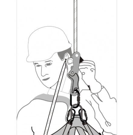 Funciona sobre cuerda trenzada de diám. Ø 10,5 a 12 mm. Ideal para el descenso en una sola cuerda.