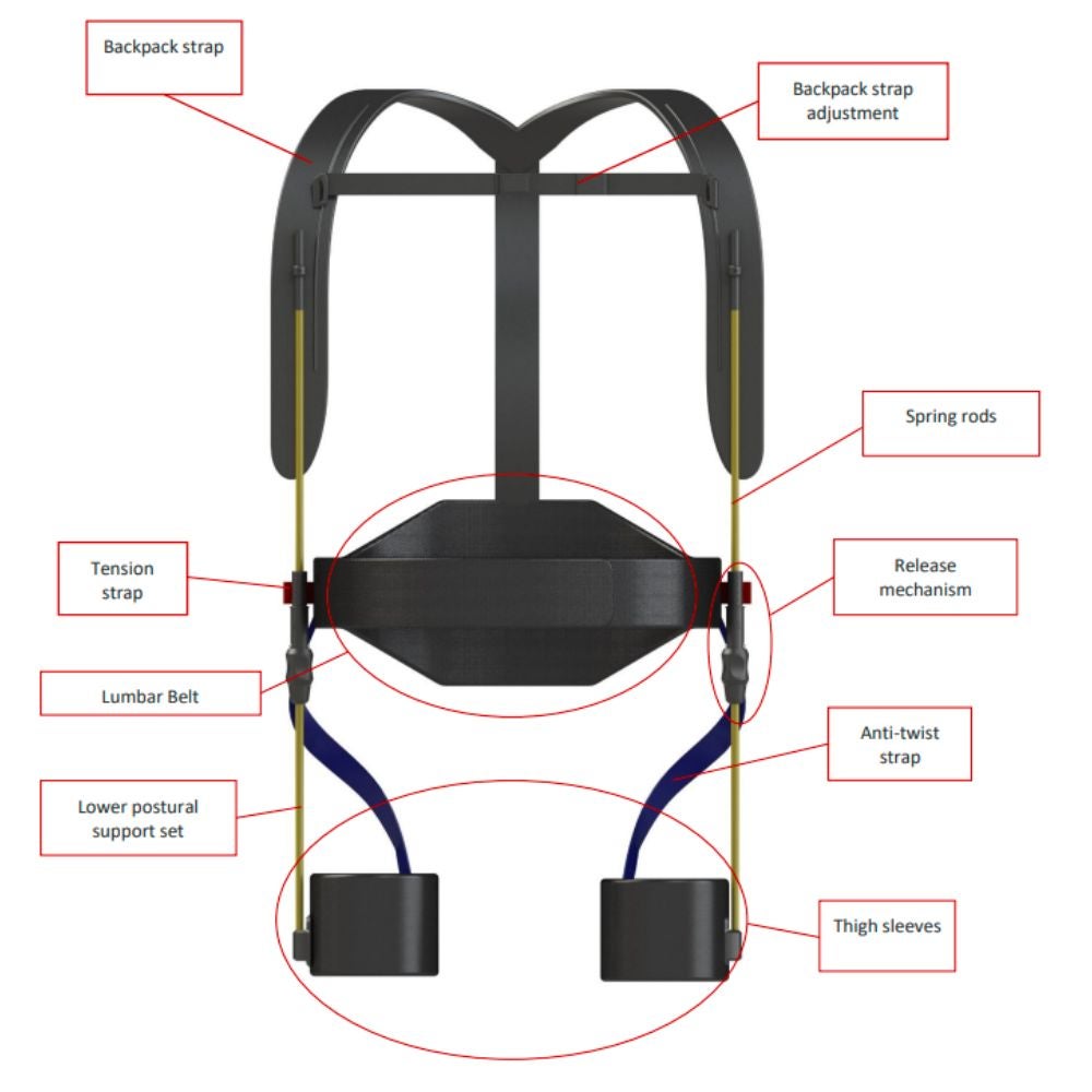 Exoesqueleto postural para prevenir el dolor de espalda.