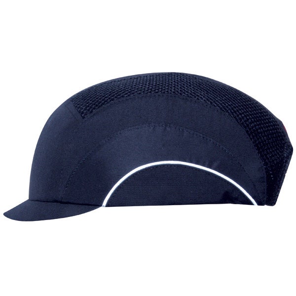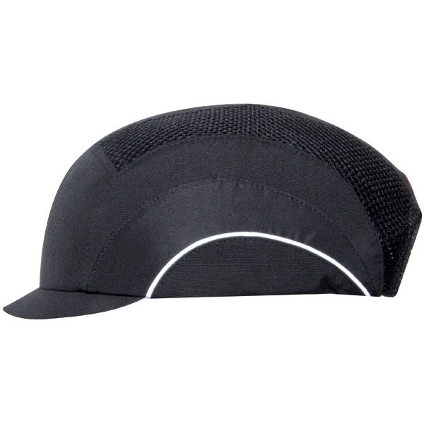 Gorra de seguridad con visera micro de 2.5 cm y concha flexible interior que proporciona un excelente ajuste. Con microfibra y rejilla negra para favorecer la ventilación. Ofrece protección para el cuero cabelludo, evita golpes en zonas bajas de techo, etc.