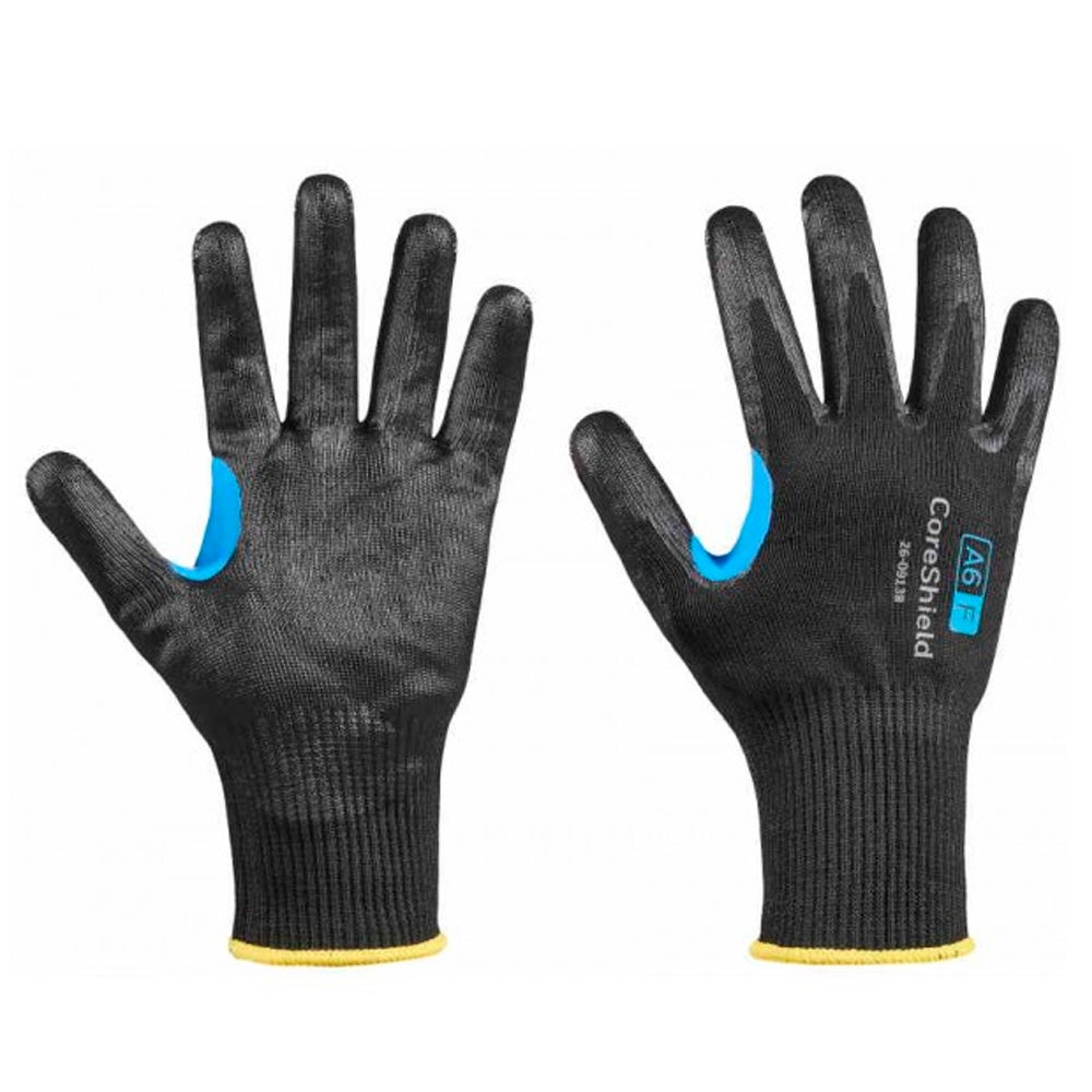 Guante anticorte CoreShield™ 26-0913B. CoreShield, forro negro basalto/aleación/HPPE de galga 13, recubrimiento negro de nitrilo suave. Paquete de 10 pares.