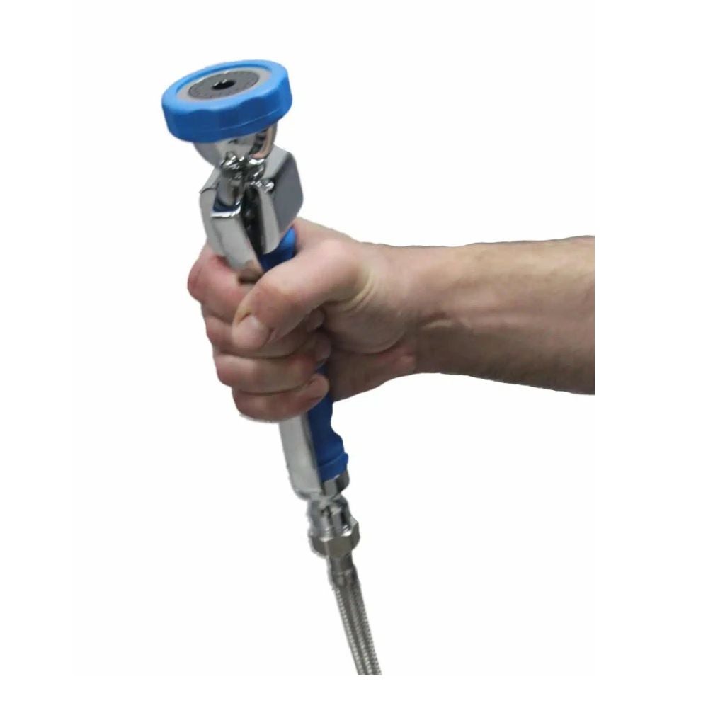 El lavaojos con ducha manual portátil está construido en acero inoxidable AISI304L garantizando una vida útil muy larga y sin problemas de corrosión para el agua.