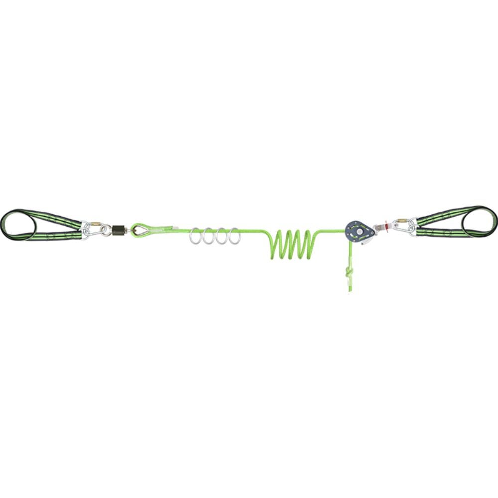 Línea de vida horizontal de cuerda de 25 metros más conectores más bolsa para 4 usuarios. Permite el cruce de los usuarios sin soltarse.