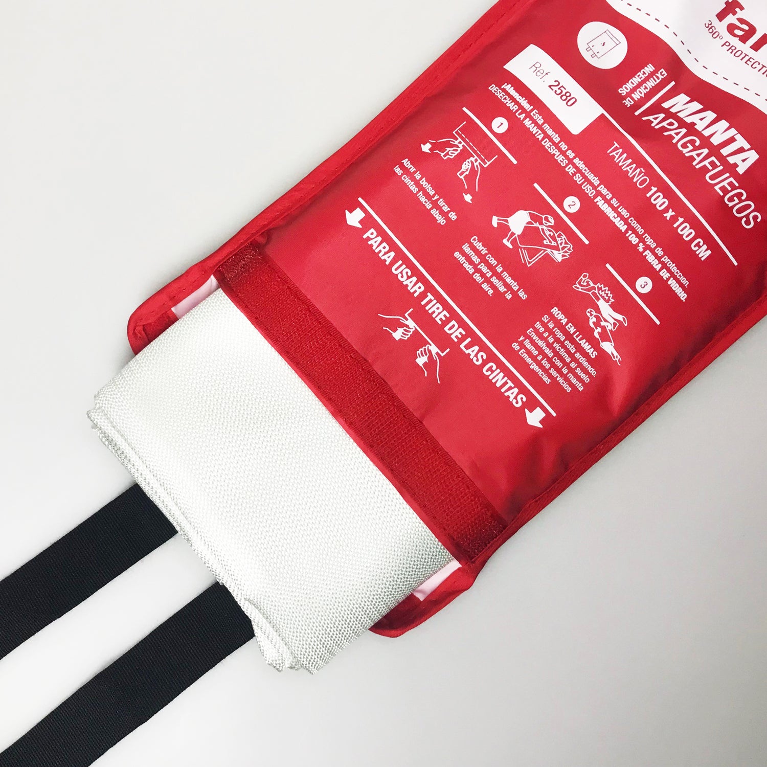 Manta ignífuga 100% fibra de vidrio.Gran flexibilidad para envolver a la persona u objeto afectado. Trama especial para ralentizar el calentamiento de la cara opuesta al calor. Peso suficiente para aguantar el empuje de las llamas y ahogarlas. Resitente hasta 550 ºC. Útiles en: cocina, jardín, coche, industria, embarcación... No utilizarlas para protección de chispas y escorias de la soldadura. Incluye funda textil. Disponibles en distintas medidas.