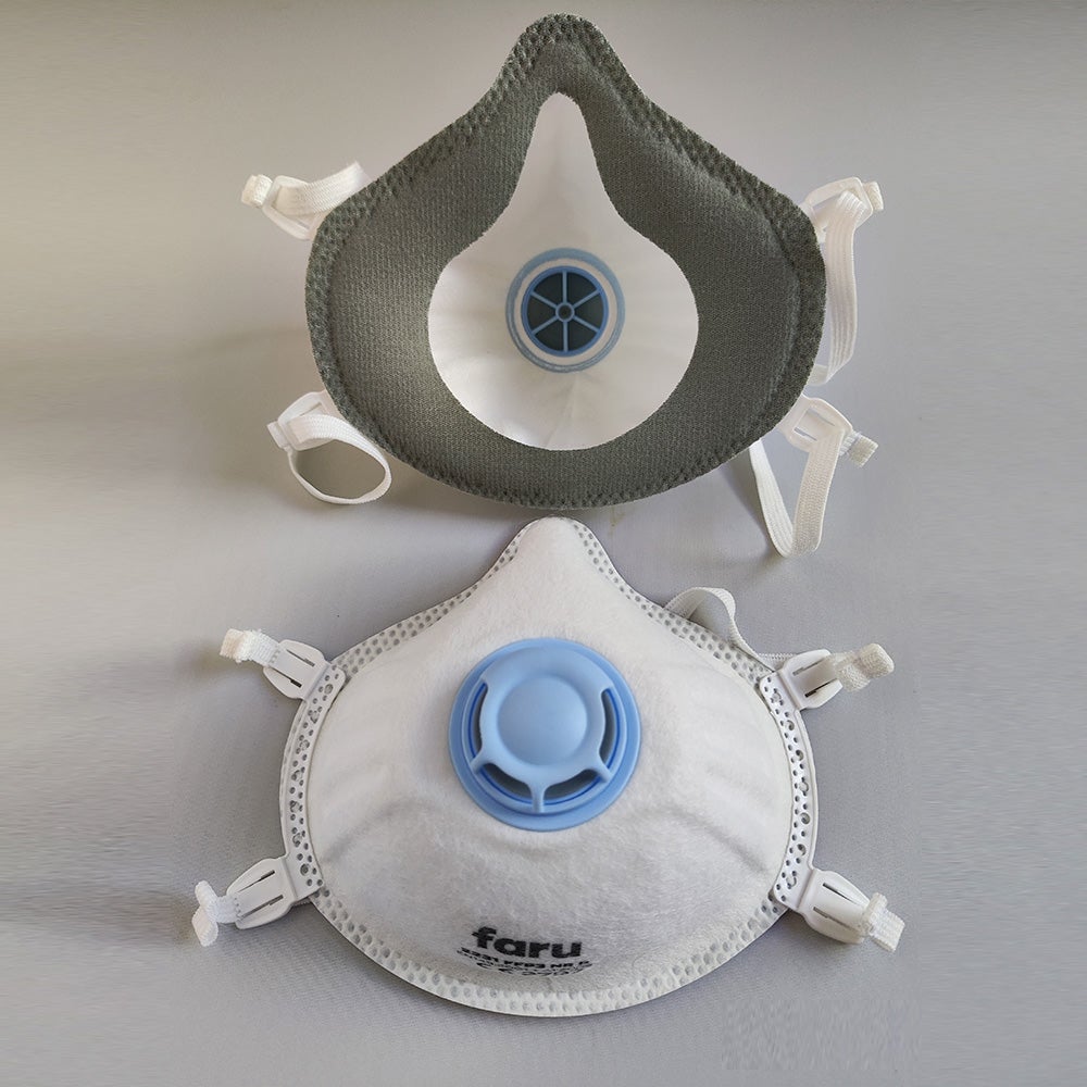 Está dotada de una espuma de sellado en el interior para un mayor ajuste en la zona de la nariz. Material sin látex para evitar la irritación. Válvula de exhalación que ofrece una baja resistencia al aire reduciendo la acumulación de aire caliente y facilitando la respiración en ambientes cálidos y húmedos.