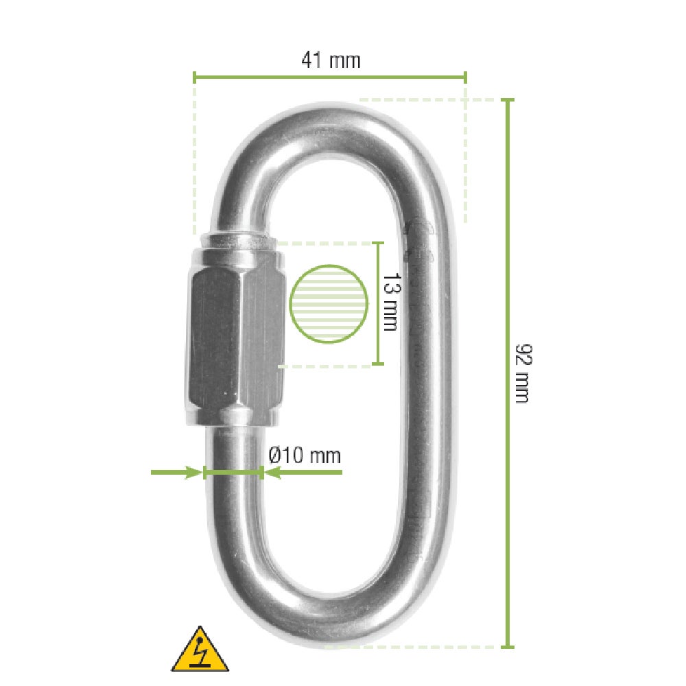 Requiere una herramienta para su cierre y apertura. Se utiliza entre otyros en el principio y fin de líneas de vida de cable. Resistencia estática: 35 kN. Longitud de la apertura: 14 mm.