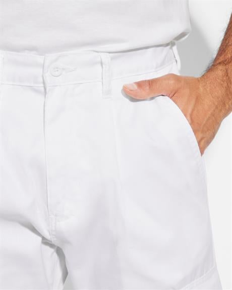 Pantalón de pintor Roly Workwear en color blanco. Largo corte recto y tejido resistente.