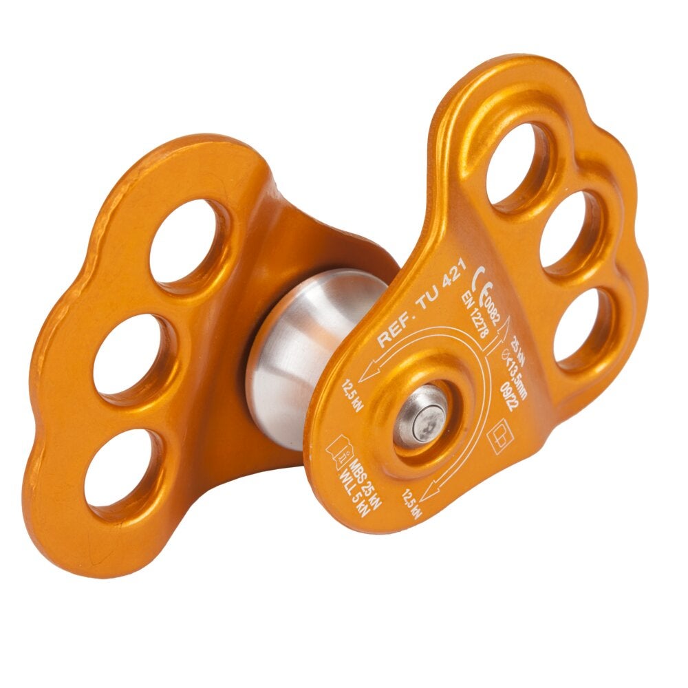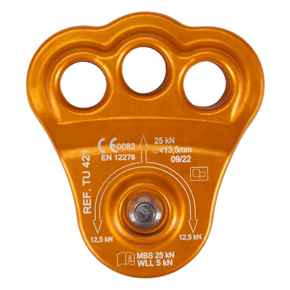 Polea singular de aluminio con revestimiento móvil diseñada para crear sistemas multipoleas. Perfecta para aplicaciones de rescate.