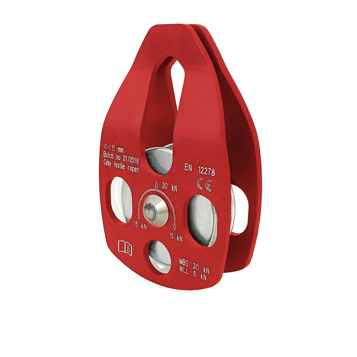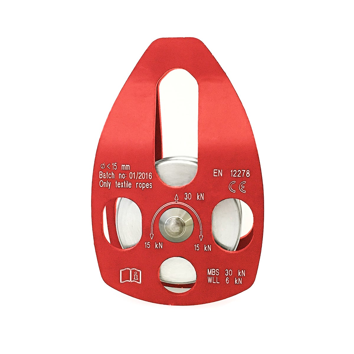 Polea singular de aluminio con revestimiento móvil diseñada para crear sistemas multipoleas. Perfecta para aplicaciones de rescate.