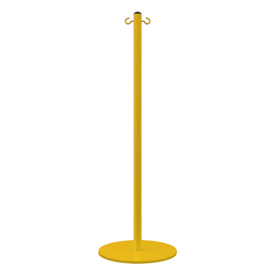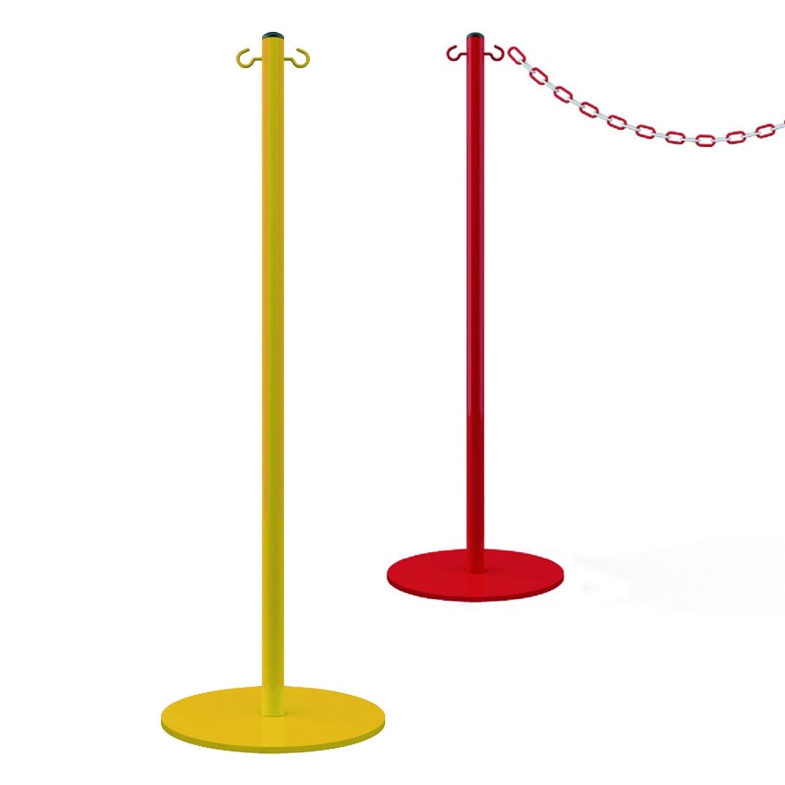 Poste fabricado en acero y lacado con sujeción para cadena para señalización de advertencia. Disponible en dos opciones de color: rojo y amarillo.