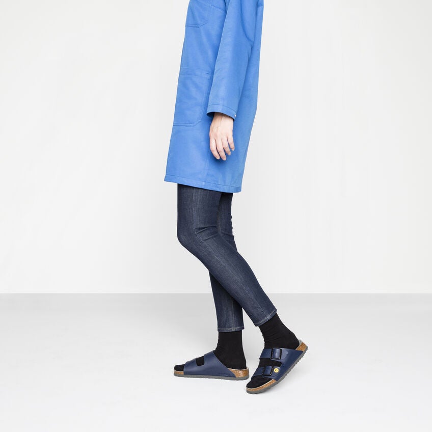 Gracias a la gran comodidad que ofrece al usarla y su plantilla anatómica Original de corcho látex, la sandalia de dos correas Arizona de BIRKENSTOCK resulta idónea para su uso diario en el trabajo. Al estar dotado de equipamiento adicional ESD contra descargas estáticas espontáneas, el modelo es óptimo para su uso en áreas ESD.