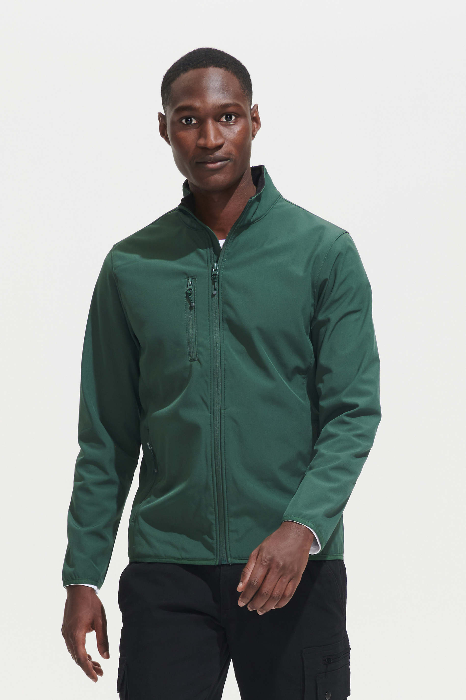 Chaqueta softshell con cremallera para hombre. Tapeta doblada del mismo tejido en la parte delantera y forro polar en la parte superior de la cremallera / presilla de tejido.