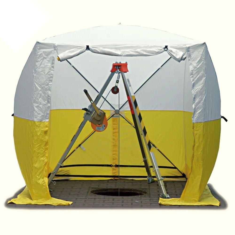 Tienda de rapido montaje de alta visibilidad para proteger a los trabajadores en trabajos en espacios confinados, aportando privacidad a tareas técnica y protegiendo de inclemencias del tiempo, como lluvia y Sol.