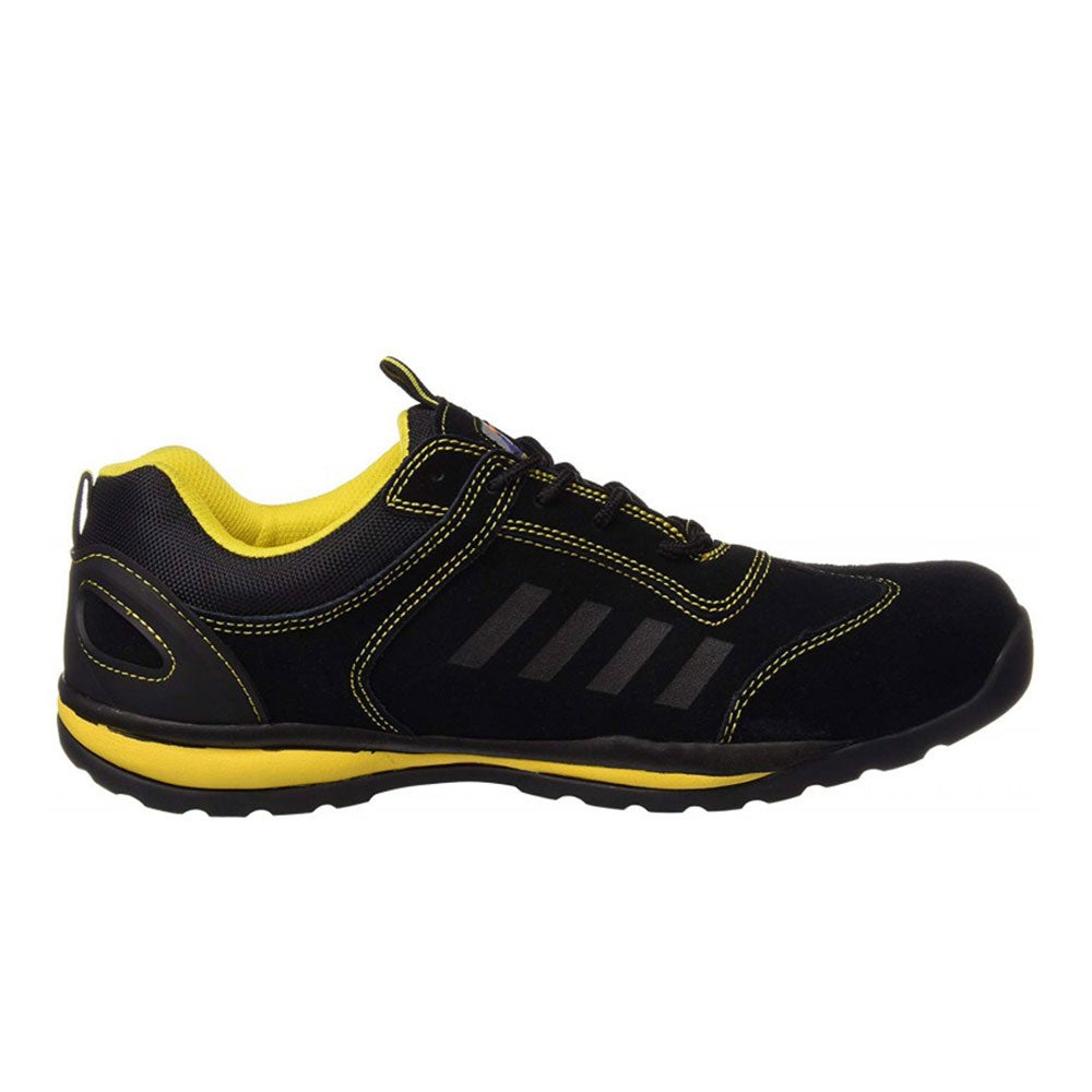 Un deportivo de seguridad de perfil bajo con un atractivo aspecto bicolor Amarillo-negro. Suela de goma resistente al calor, puntera y plantilla de acero.