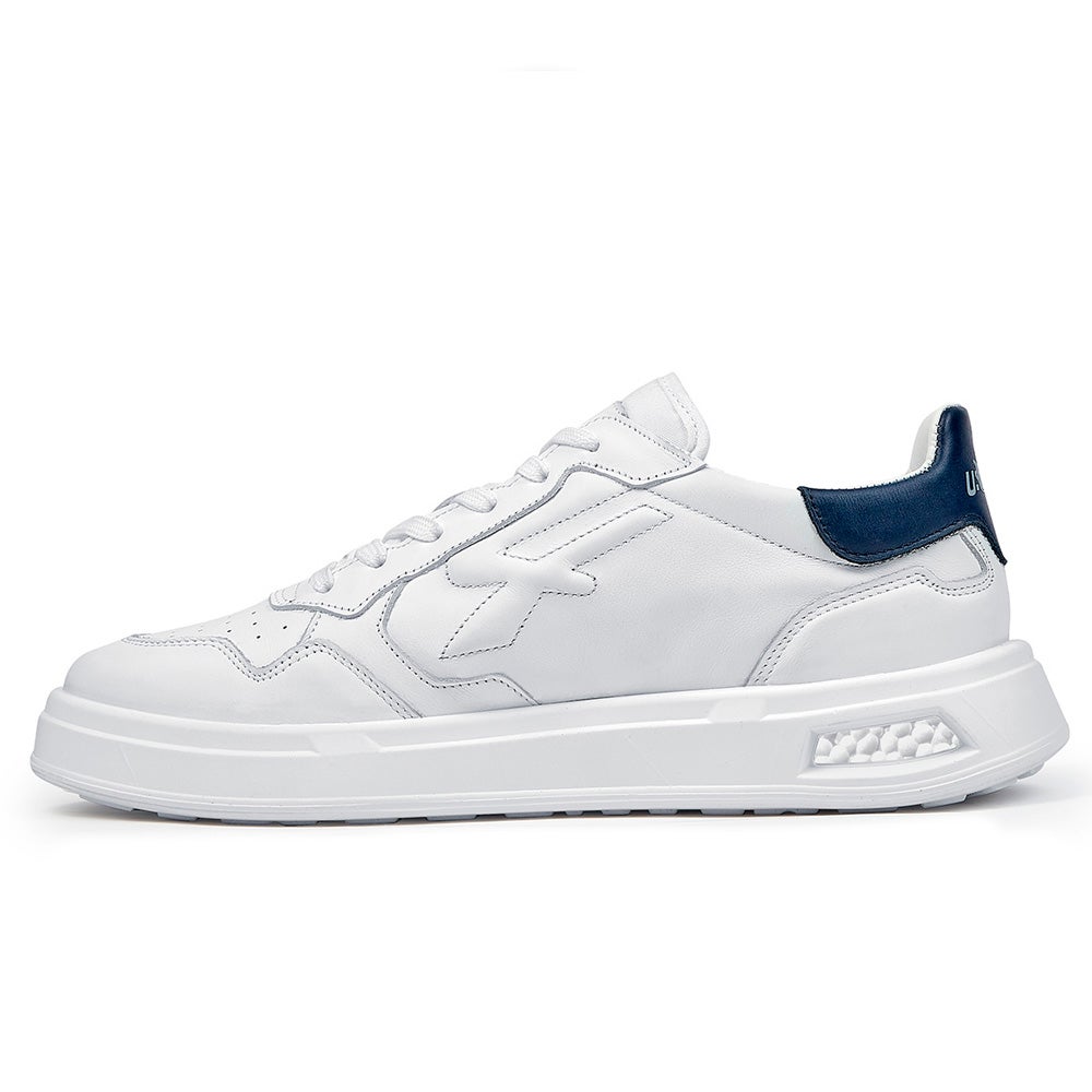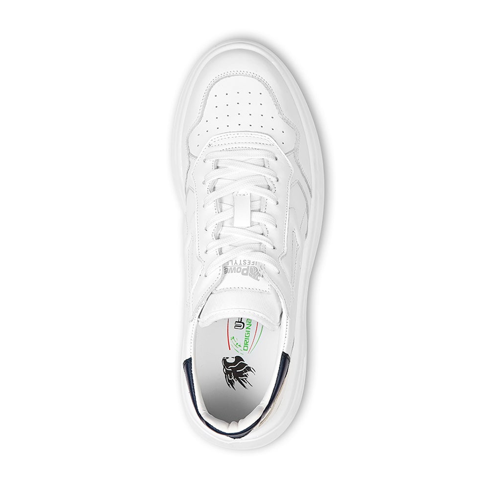 La parte superior de cuero blanco suave y los detalles azules hacen que esta sneaker sea adecuada para cualquier ocasión.