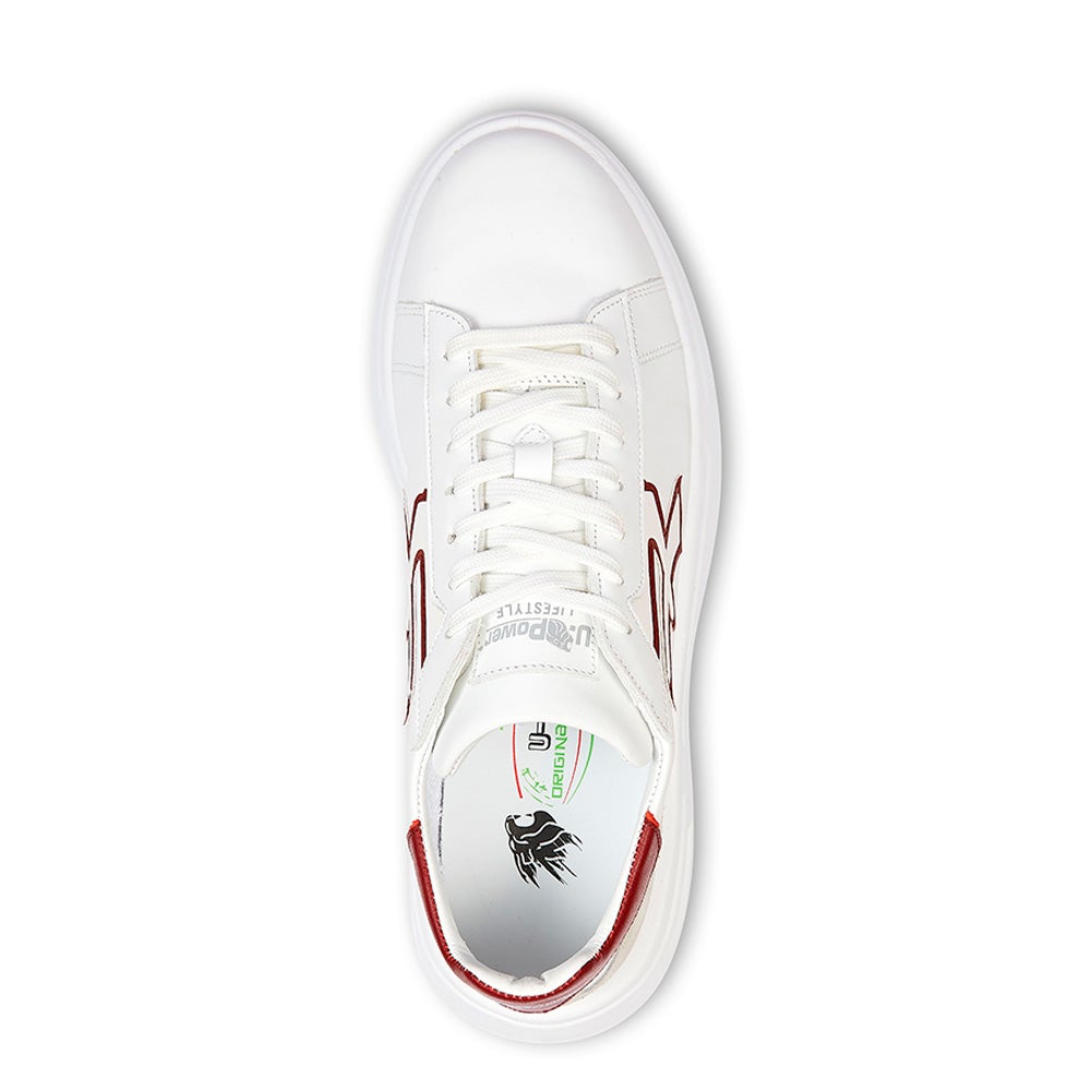 Realizada en suave piel blanca, con detalles amaranto y talón de gamuza, es una sneaker práctica y perfecta para cualquier uso.
