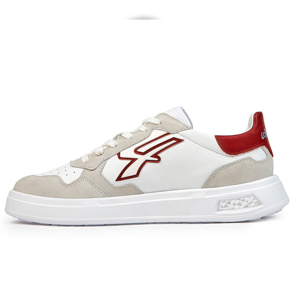 Esta sneaker antideslizante con parte superior y plantilla de cuero blanco suave se enriquece con detalles de amaranto. La punta perforada garantiza una mayor transpirabilidad.