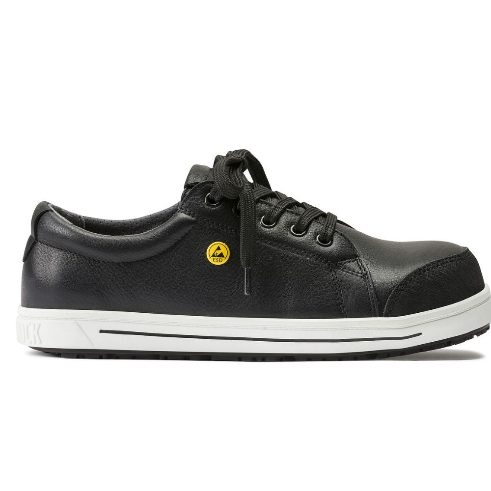Esta variante ESD se ha desarrollado especialmente para personas que trabajan en el ámbito de la microelectrónica o con tecnología de alta frecuencia. Las siglas ESD significan Electro Static Discharge (descarga electroestática). Estos modelos de calzado proporcionan de manera activa un suave alivio para el usuario. Los elementos antiestáticos de la suela compensan las posibles diferencias de tensión eléctrica entre el usuario y el entorno de trabajo mediante una "conexión a tierra" permanente de los pies. Resultan reconocibles por su emblema circular de color amarillo. Advertencia: La resistencia a tierra del calzado ESD debe ser menor que 35 MOhm, por lo que no actúa como aislante.