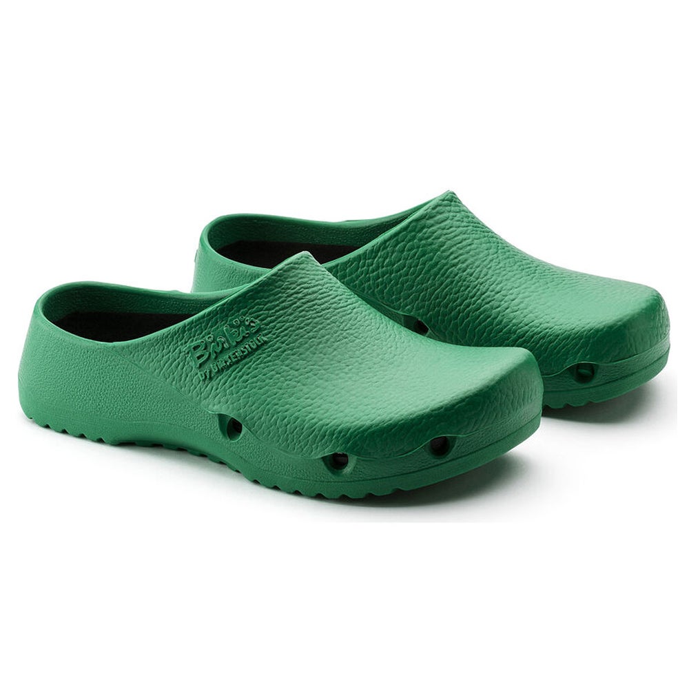 En la parte delantera, las generosas aberturas de ventilación garantizan un ambiente fresco para el pie. La plantilla de PU Original de BIRKENSTOCK refuerza la anatomía natural del pie, previniendo de este modo daños posturales y en las articulaciones, así como el cansancio de la musculatura. La plantilla puede cambiarse por otra en caso necesario y, al igual que el zueco en su integridad, posee propiedades antiestáticas comprobadas. El zueco es resistente a aceites y grasas. Puede lavarse a temperaturas de hasta 80 °C (la plantilla extraíble, hasta 60 °C), y admite también una desinfección eficaz.