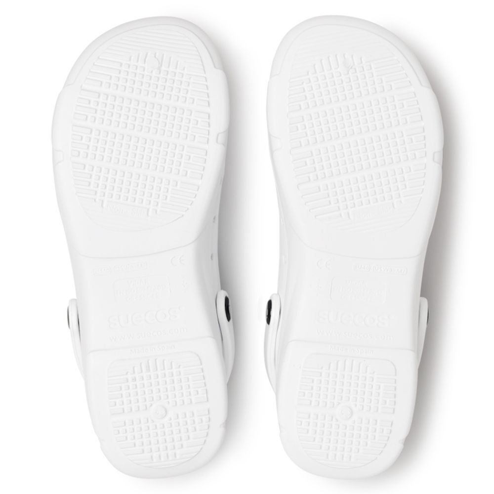 Los zuecos sanitarios Vidar también disponen de unos orificios en la parte baja para aumentar la ventilación, una protección extra en la parte trasera, estando más cerrada que nuestro zueco clásieco Oden y una tira de agarre trasera que hace que tenga una sujeción óptima. Finalmente, este calzado sanitario dispone de un relieve en la plantilla con el objetivo de mejorar el flujo y la circulación sanguínea.