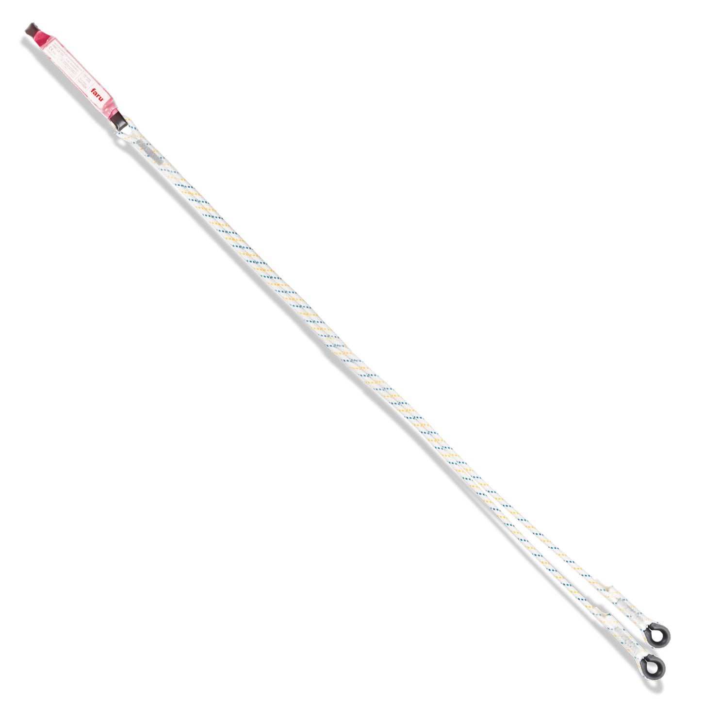 Elemento de amarra dupla com absorvedor de energia, fabricado com corda de 10,5mm de diâmetro, apto para quedas. Adicione conectores. Os comprimentos não levam em conta os conectores, é importante não ultrapassar os 2,0m de comprimento total. Disponível uma versão Ignífuga.