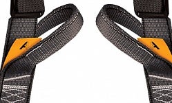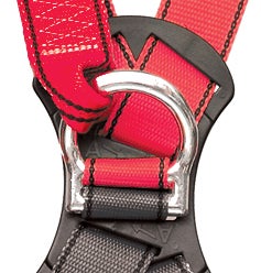Arnês de conforto com gancho dorsal, externo e fita de extensão. Almofadas de ombro de material elástico especial. Ajuste peitoral. Cinto de posicionamento giratório 180º com porta-ferramentas. Fabricado com fitas de 45 mm. Adequado para longas jornadas. Inclui bolsa para arnês.