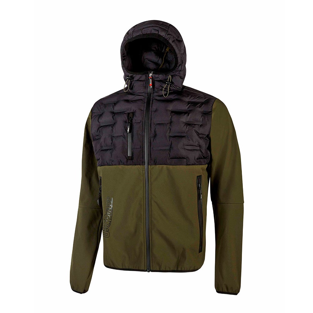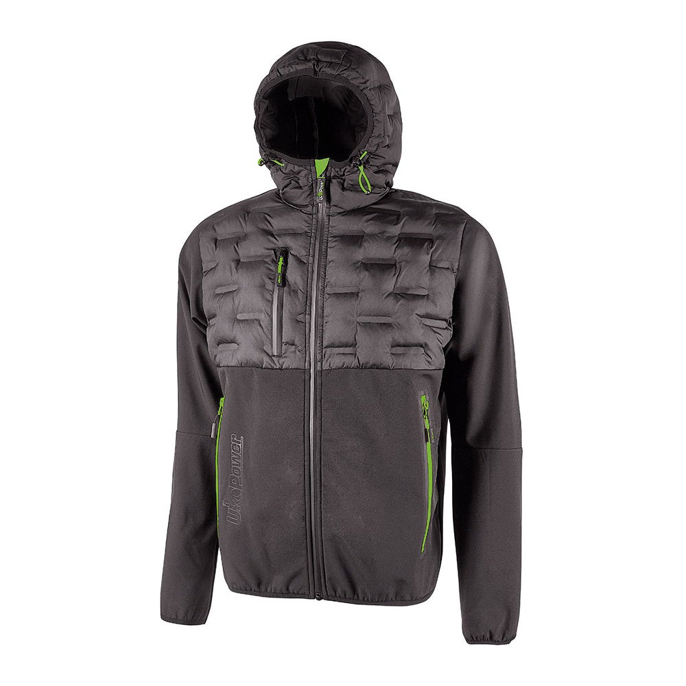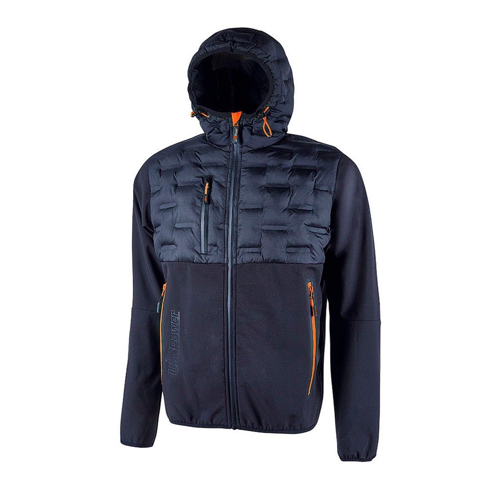 Jaqueta acolchoada U-Power para homens. Modelo híbrido, repelente à água, respirável e corta-vento. Muito versátil e ideal para quem realiza trabalhos dinâmicos em ambientes frios ou intermediários. Oferece total liberdade de movimento.