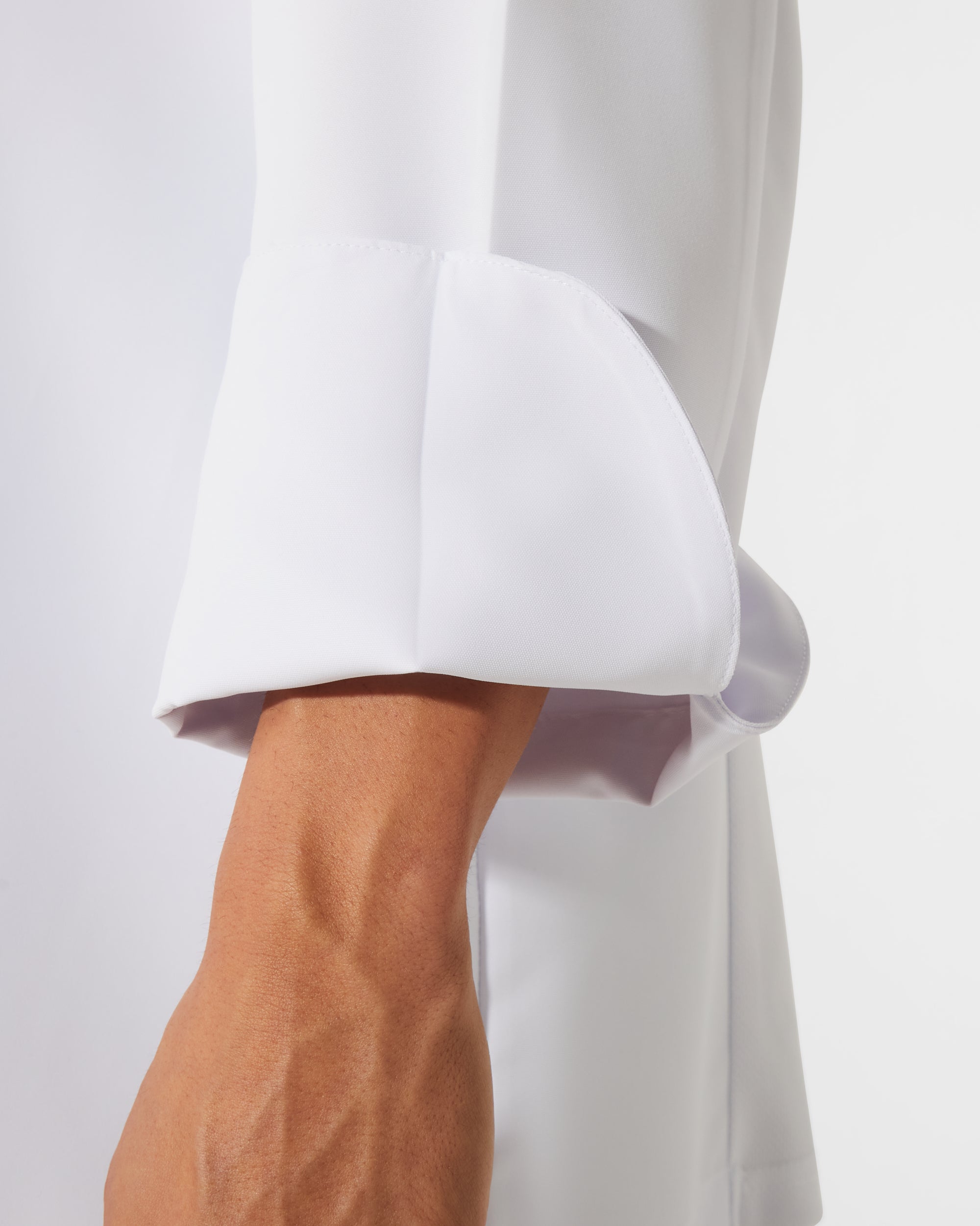 Jaqueta de cozinheiro Roly Workwear Dabiz manga longa masculina. Disponível nas cores branca e preta.
