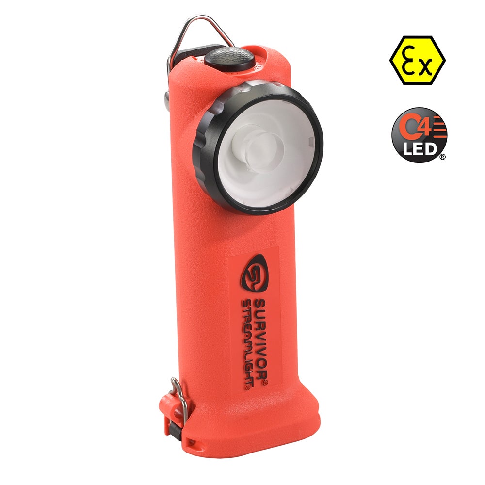 A LED SURVIVOR® é uma lanterna de mão leve com cabeça angulada, projetada para uso em locais perigosos.