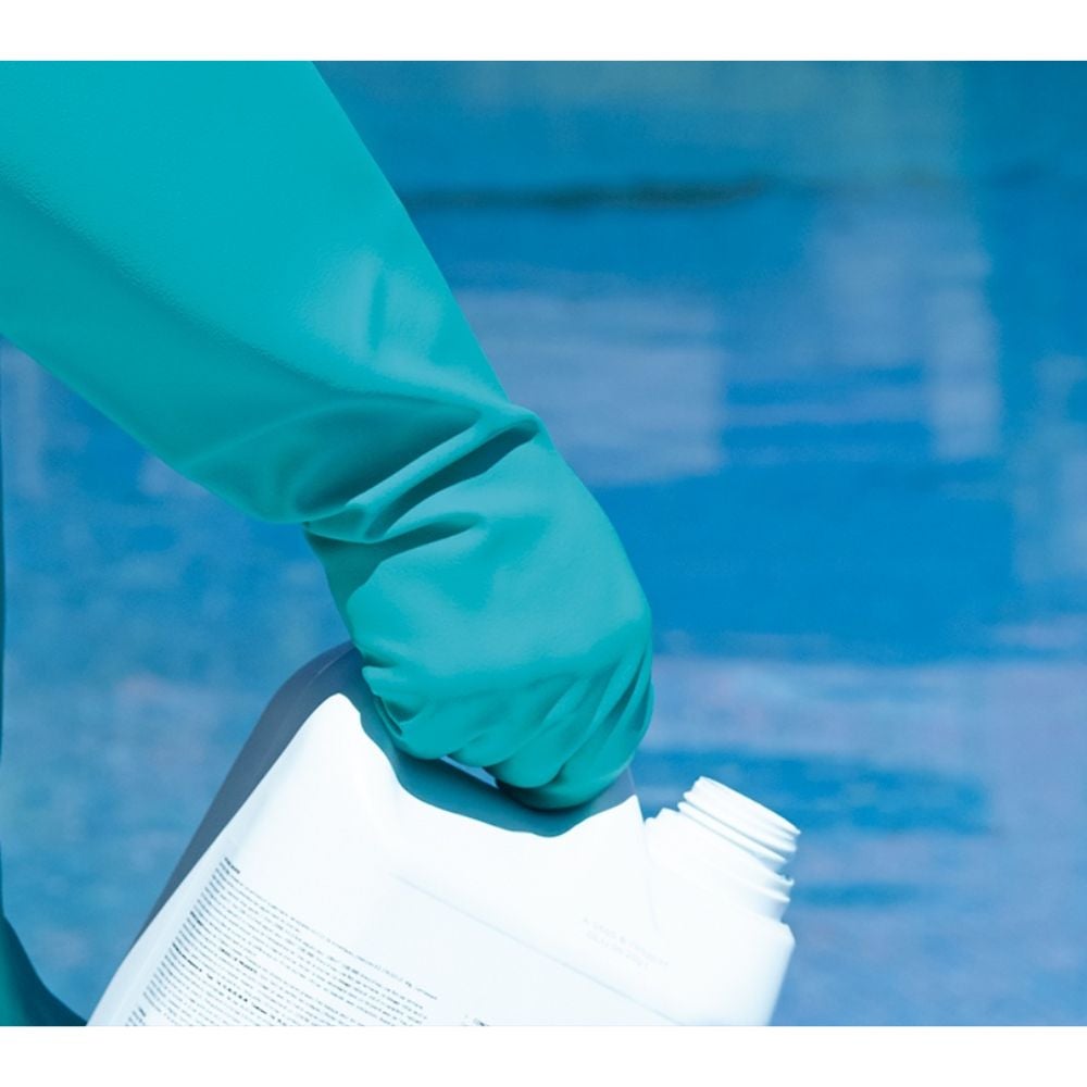 Luvas de resistência química para cuidados de jardins e piscinas. Com alta resistência à abrasão e rupturas, além de forte resistência a múltiplos agentes químicos e biológicos. Perfeito para tratamentos em piscina, reparos, tratamentos de cloro e mais.