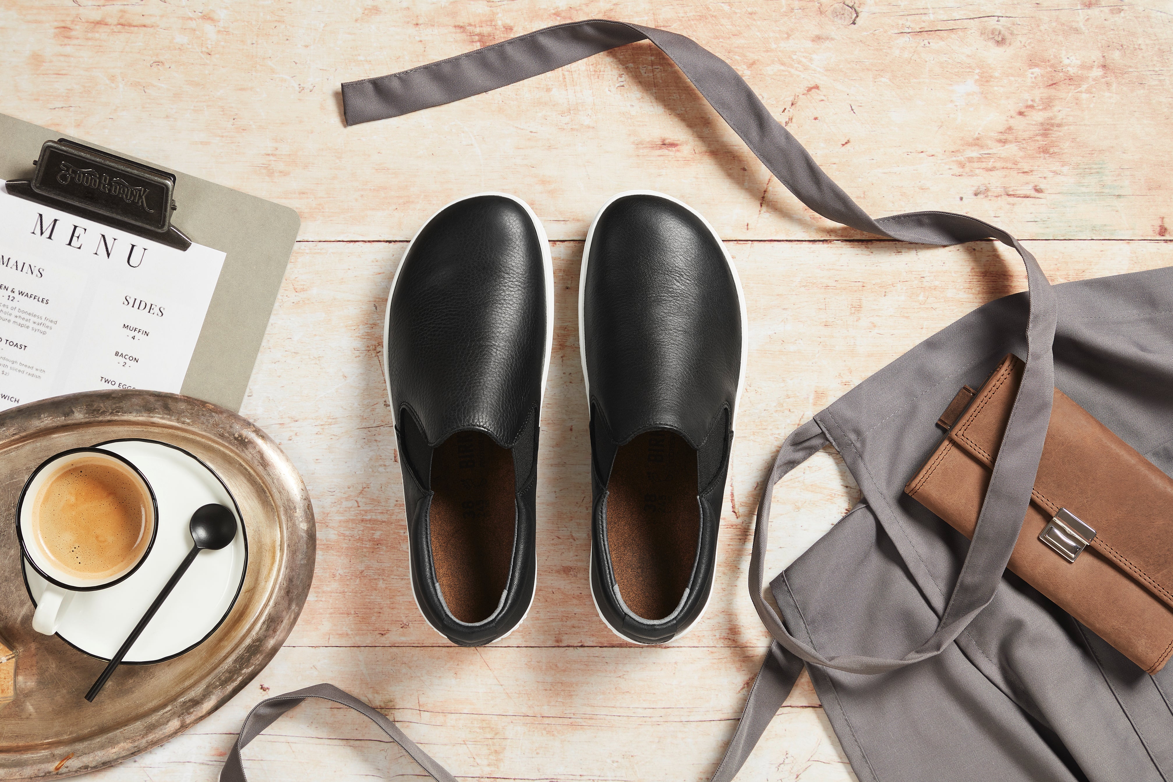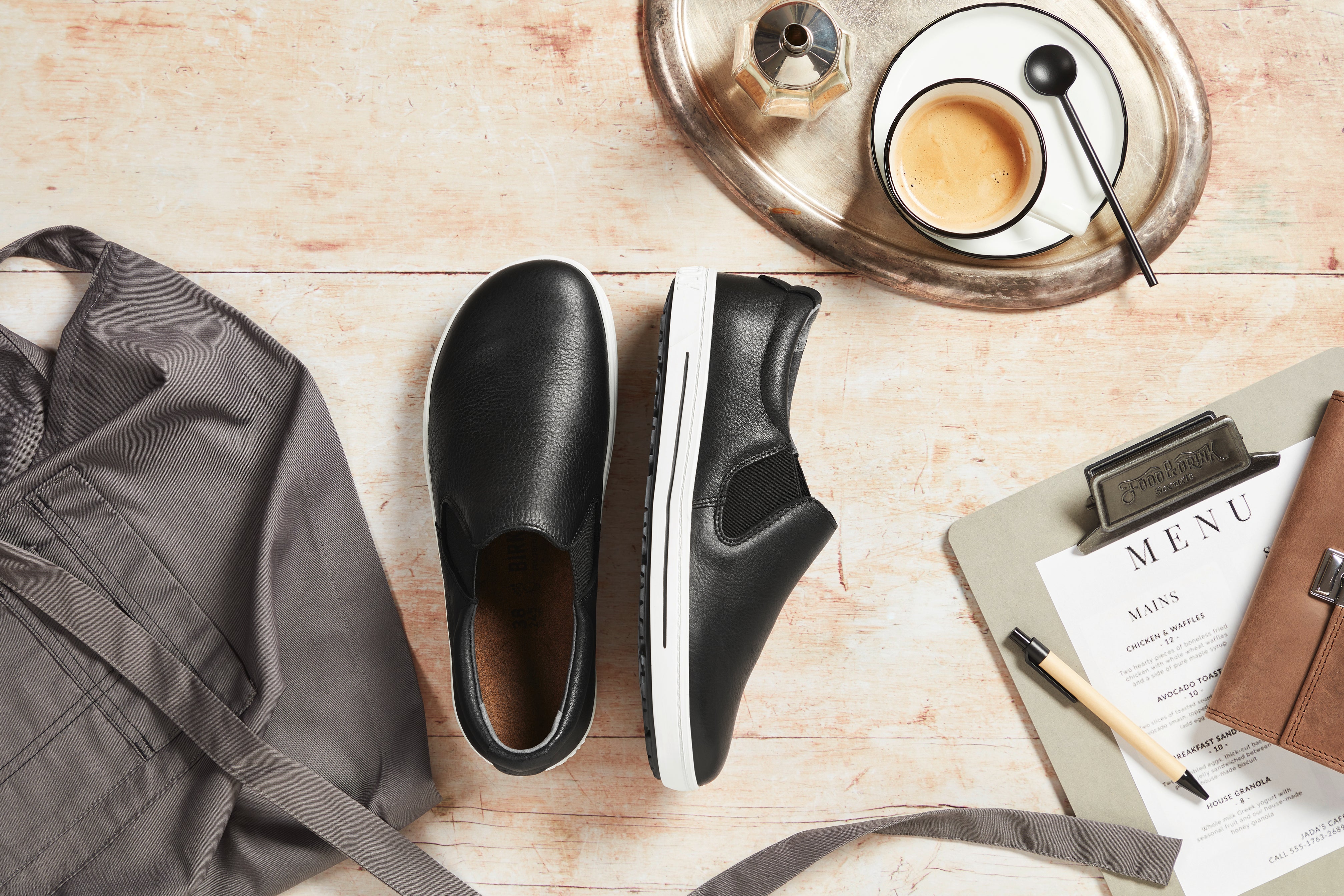 O calçado profissional QO400 da BIRKENSTOCK com palmilha removível proporciona suporte seguro e conforto para os pés, para que você possa ficar em pé, caminhar e correr confortavelmente durante as horas de trabalho, mesmo em ambientes desafiadores.