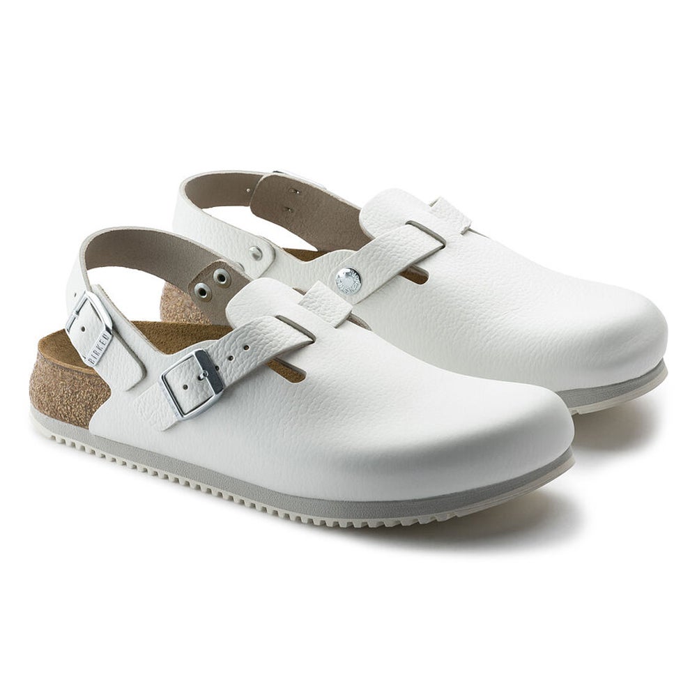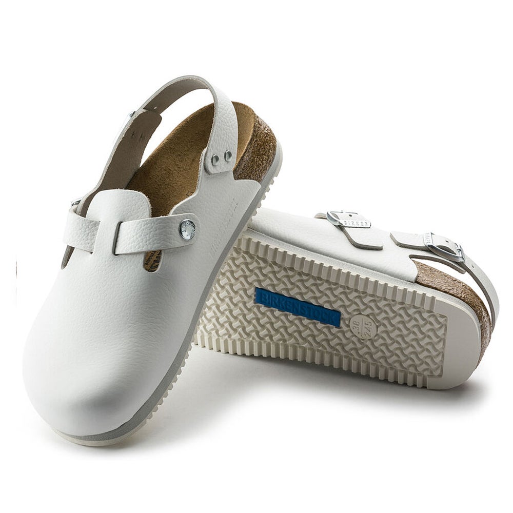 A correia no calcanhar reforça a estabilidade na fixação do calçado. São características que são valorizadas por quem trabalha no campo médico ou em cozinhas, assim como pelo pessoal de serviço, que costuma passar muitas horas sem sentar. A sola do Tokio SL passou nos testes de propriedades antiderrapantes conforme a norma EN ISO 20347:2012.