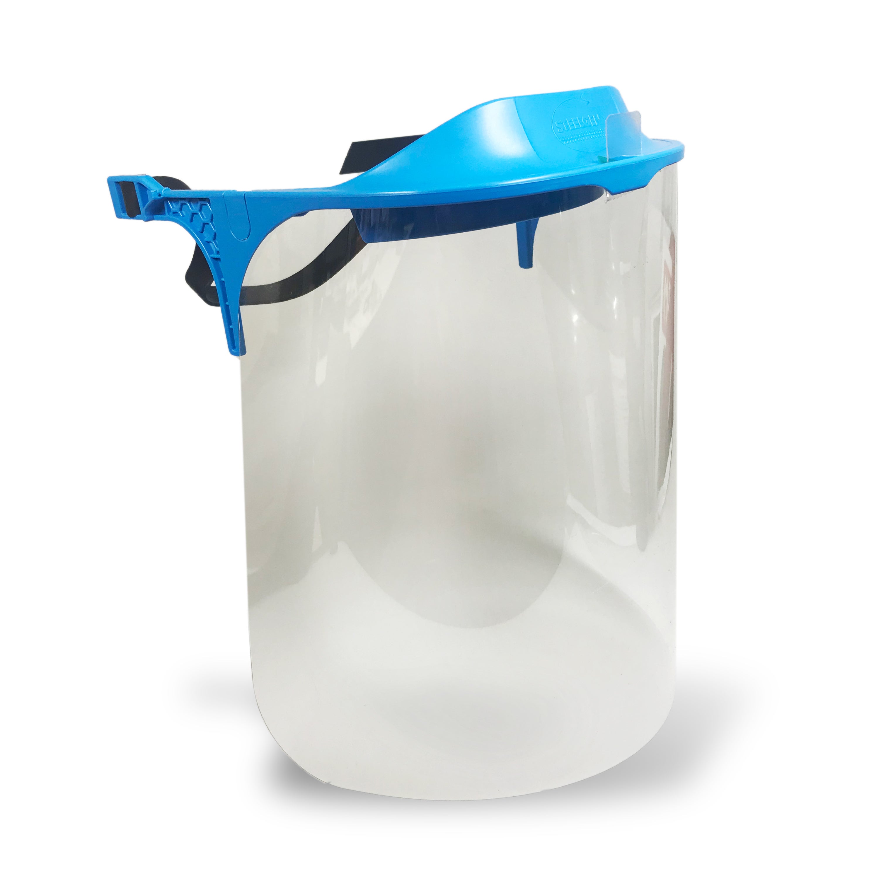 Protetor facial reutilizável de maior resistência que fornece uma barreira física contra respingos.