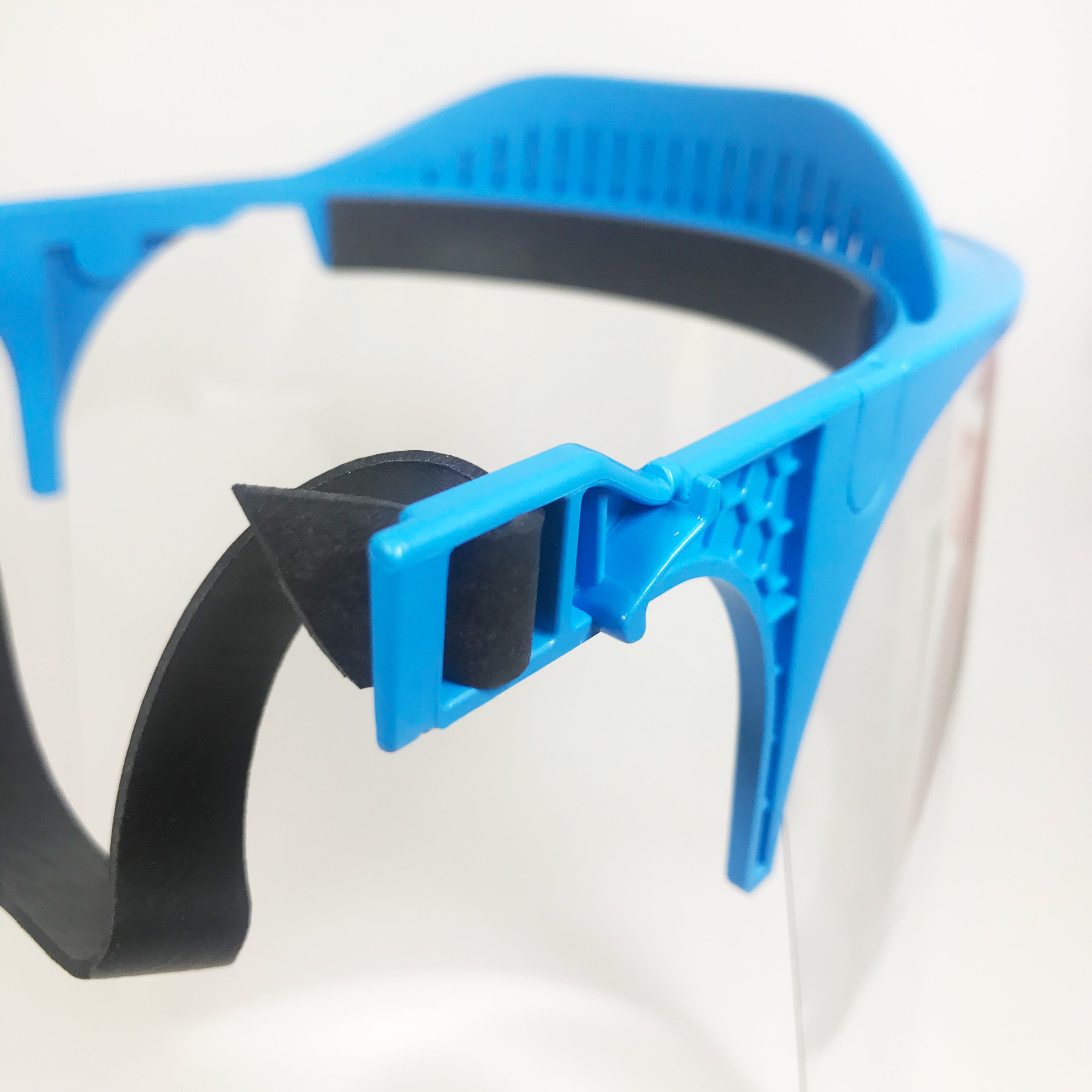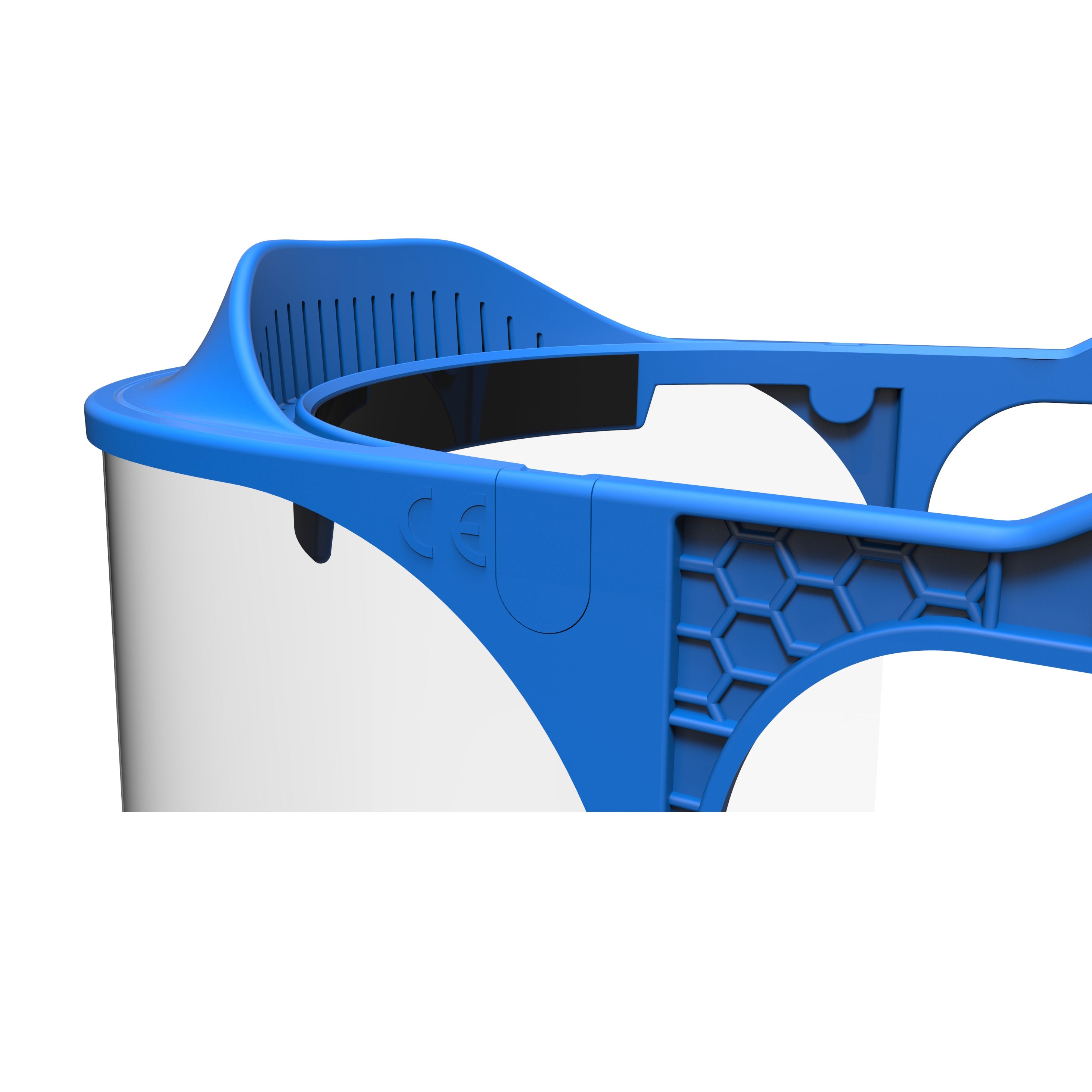 O policarbonato do visor de Classe Óptica 1 (a mais alta que permite uso contínuo), cobre ambos os olhos e o rosto, oferecendo proteção facial contra a projeção de líquidos e impedindo que contaminantes possam penetrar nos olhos, boca ou nariz.