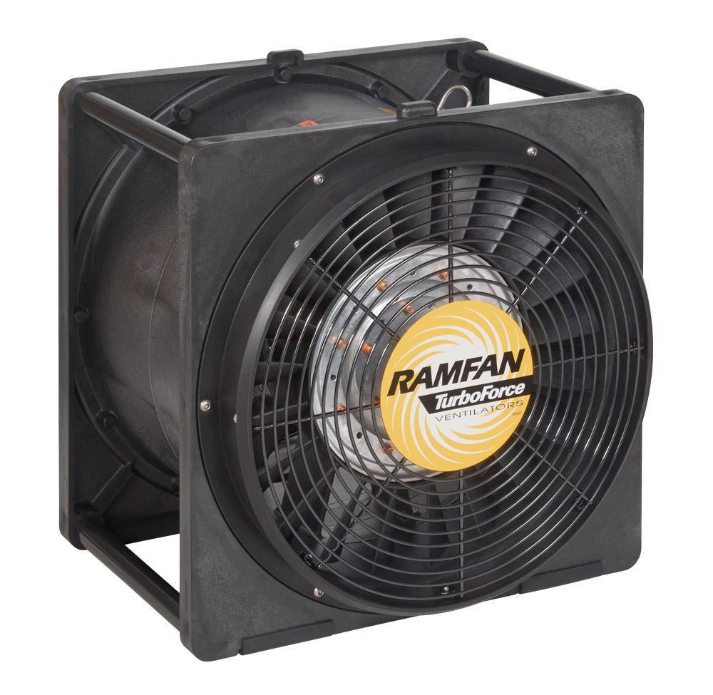 Ventilador-extrator para ambientes explosivos (certificação americana) impulsionado por ar comprimido. Extrai ou impulsiona grande quantidade de ar. Turboventilador muito silencioso. À prova de corrosão, resistente a cortes e virtualmente indestrutível. Carcaça de ABS reforçada com fibra de vidro muito resistente. Ventilador de 17 lâminas de alumínio. Nível de ruído: 89 dB. Potência de extração: 5.440 m3/h. Motor: 1.2Hp/0.9kW. Inclui um adaptador para o tubo reversível. Equipamento completo com lubrificador do motor, silenciador, válvula de controle de pressão e conexão à terra. Consumo de ar: 40cfm/68m3/hr. Relação de indução: 80:1